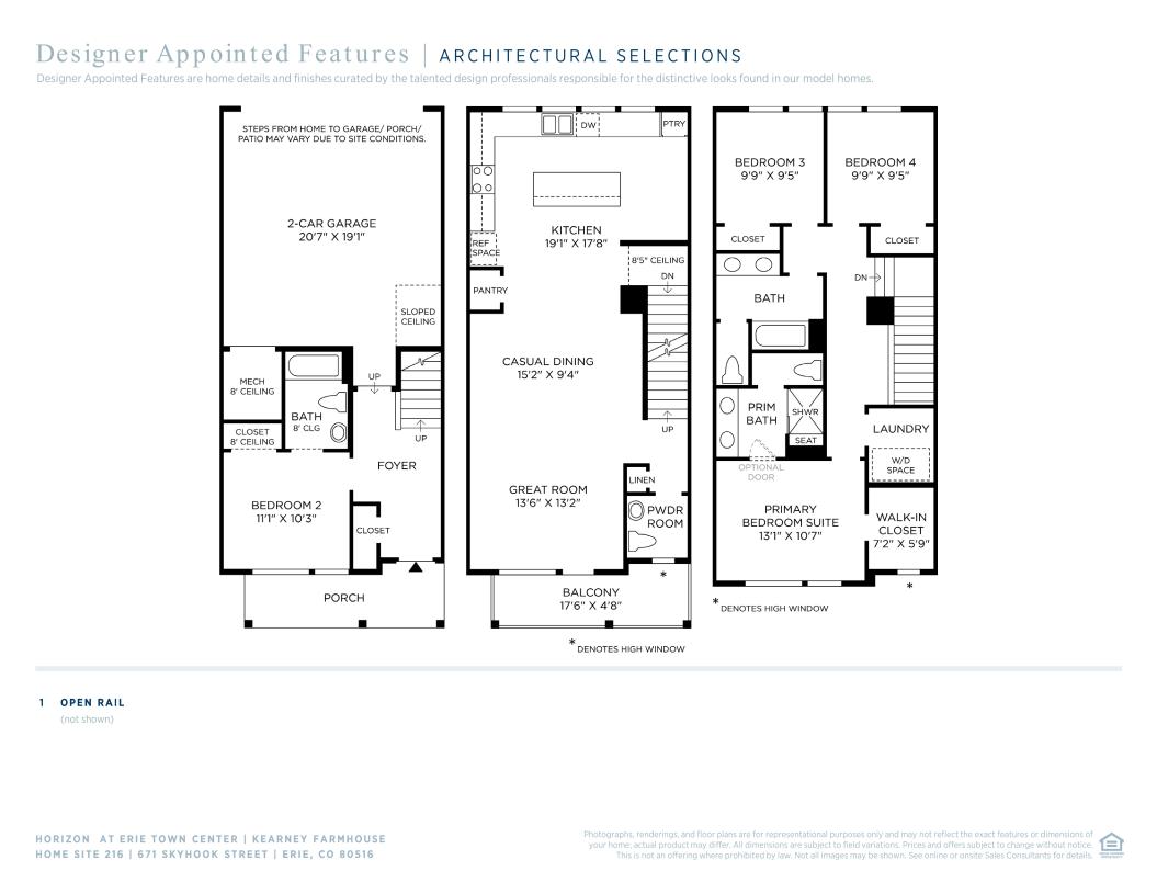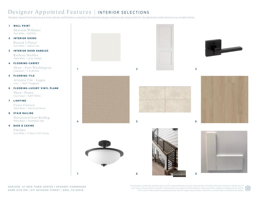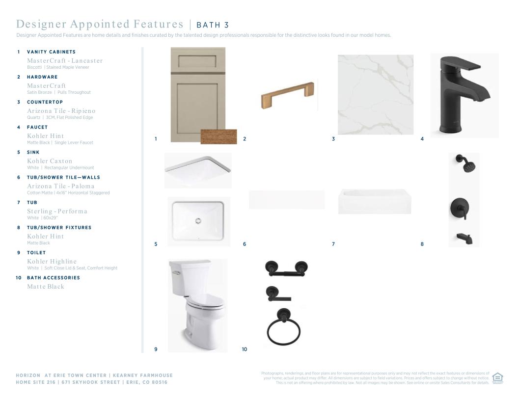 The Kearney offers a desirable open-concept layout with a bright and airy living area. A charming foyer flows past a secondary bedroom with a desirable private bath. Overlooking a casual dining area and spacious great room on the second floor is an expansive kitchen featuring a center island with breakfast bar, ample counter space, and a convenient pantry. The third floor hosts generous secondary bedrooms with a shared full hall bath offering a dual-sink vanity and a private water closet. A secluded primary bedroom features plenty of natural light, a sizable walk-in closet, and a spa-like bath with a dual-sink vanity, a luxe shower with seat, and a private water closet. Other highlights include a first-floor powder room, bedroom-level laundry, and plentiful storage.