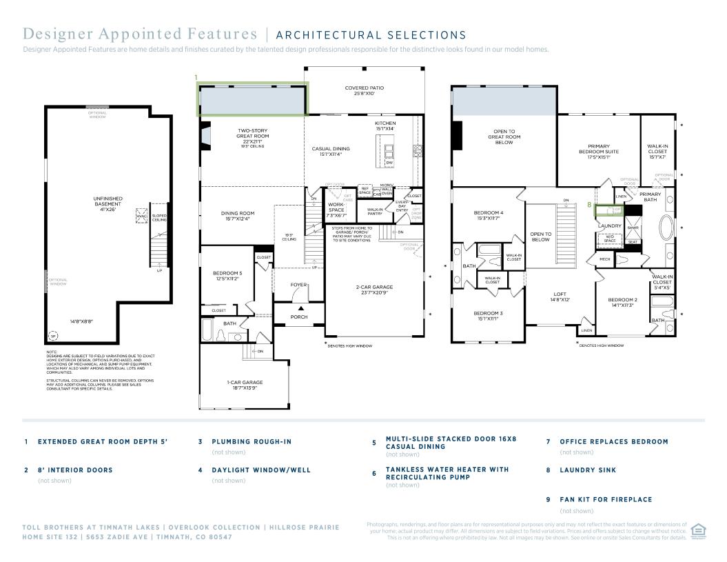 The Hillrose leaves a lasting impression with an expansive open-concept floor plan with modern architecture and elegant features. The soaring two-story great room and elegant dining room greet you as you walk through the inviting foyer, offering views to the large rear covered patio. Defining the well-appointed kitchen is a bright casual dining area, a large center island with breakfast bar, plenty of counter and cabinet space, and a sizable walk-in pantry. The impressive primary bedroom suite is highlighted by an impressive walk-in closet and a spa-like primary bath with dual vanities, a large luxe shower with seat, linen storage, and a private water closet. Secondary bedrooms, two with a shared bath with dual vanities and one with private bath, feature walk-in closets. Additional highlights include a versatile loft, a spacious flex room off the foyer, a functional workspace, easily accessible second-floor laundry, a powder room, an everyday entry, and ample additional storage.