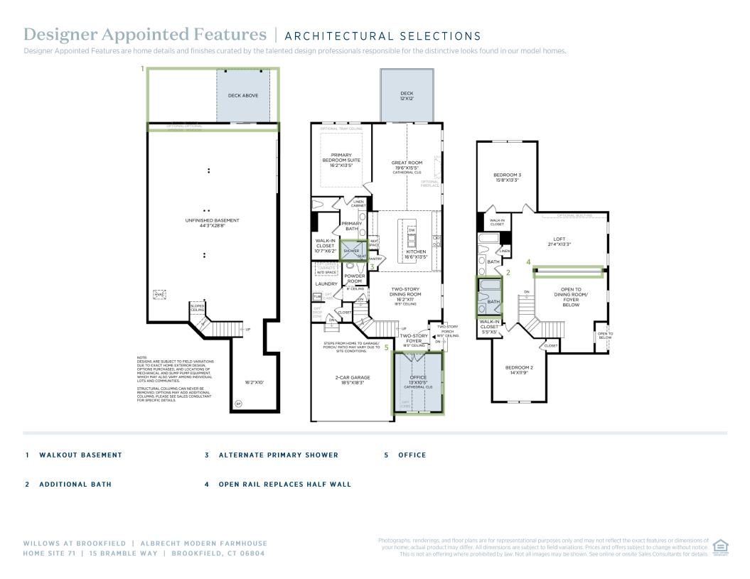Soaring ceilings and graceful details define the Albrecht’s thoughtful design. A spacious living room with a cathedral ceiling and a lovely two-story dining room flank the welcoming two-story foyer. Overlooking the expansive great room with rear yard access, the well-appointed kitchen is complemented by a large center island with breakfast bar, wraparound counter and cabinet space, a roomy pantry, and a passthrough to the dining room. Highlighting the gorgeous secluded primary bedroom suite is a sizable walk-in closet and a lovely primary bath with a dual-sink vanity, large luxe shower with seat, linen storage, and a private water closet. Central to a generous loft, secondary bedrooms feature walk-in closets and a shared hall bath with a dual-sink vanity and linen storage. Additional highlights include a convenient powder room adjacent to the centrally located laundry, and extra storage throughout.