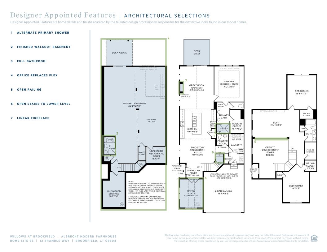 Soaring ceilings and graceful details define the Albrecht’s thoughtful design. A spacious living room with a cathedral ceiling and a lovely two-story dining room flank the welcoming two-story foyer. Overlooking the expansive great room with rear yard access, the well-appointed kitchen is complemented by a large center island with breakfast bar, wraparound counter and cabinet space, a roomy pantry, and a passthrough to the dining room. Highlighting the gorgeous secluded primary bedroom suite is a sizable walk-in closet and a lovely primary bath with a dual-sink vanity, large luxe shower with seat, linen storage, and a private water closet. Central to a generous loft, secondary bedrooms feature walk-in closets and a shared hall bath with a dual-sink vanity and linen storage. Additional highlights include a convenient powder room adjacent to the centrally located laundry, and extra storage throughout.
