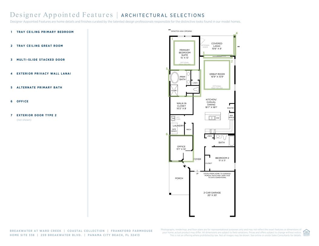 Thoughtfully designed and full of charm, the Frankford home design offers extraordinary single-level living. A gracious foyer and flex room flow into the stunning open-concept great room and casual dining area with access to the beautiful rear covered lanai. The well-designed kitchen is defined by a spacious center island with breakfast bar, wraparound counter and cabinet space, and a sizable pantry. The secluded primary bedroom suite is complemented by an ample walk-in closet and a splendid primary bath with a dual-sink vanity, a large luxe shower, and a private water closet. The large secondary bedroom features a roomy closet and a shared hall bath. Additional highlights include conveniently located laundry and plenty of additional storage.