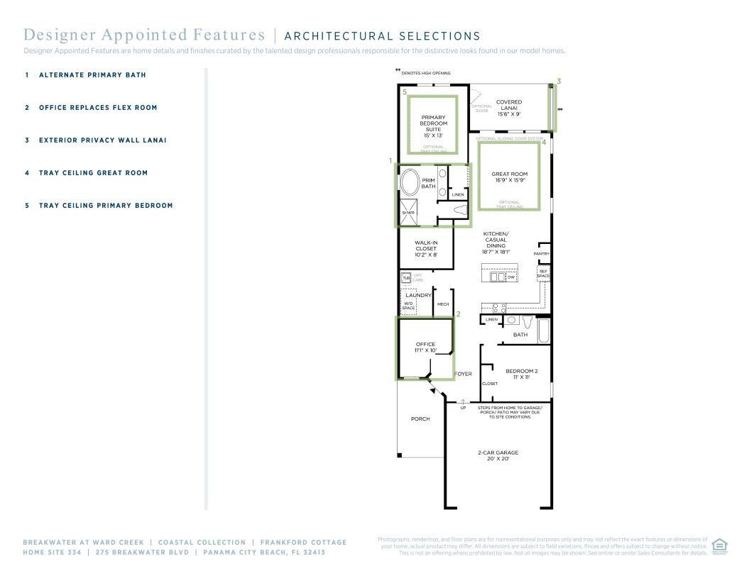 Thoughtfully designed and full of charm, the Frankford home design offers extraordinary single-level living. A gracious foyer and flex room flow into the stunning open-concept great room and casual dining area with access to the beautiful rear covered lanai. The well-designed kitchen is defined by a spacious center island with breakfast bar, wraparound counter and cabinet space, and a sizable pantry. The secluded primary bedroom suite is complemented by an ample walk-in closet and a splendid primary bath with a dual-sink vanity, a large luxe shower, and a private water closet. The large secondary bedroom features a roomy closet and a shared hall bath. Additional highlights include conveniently located laundry and plenty of additional storage.