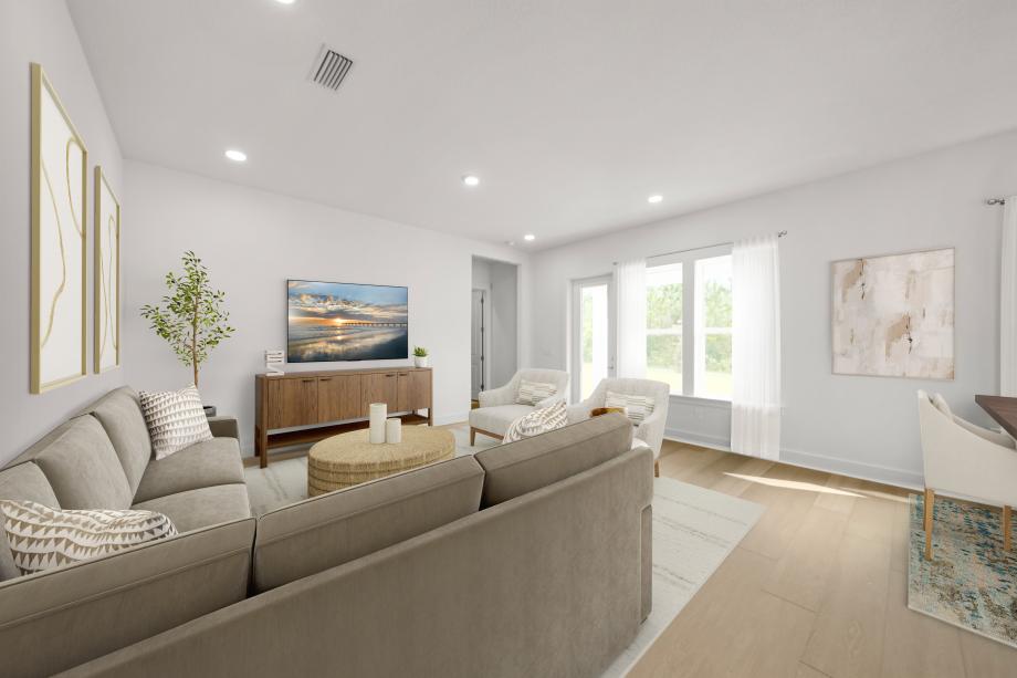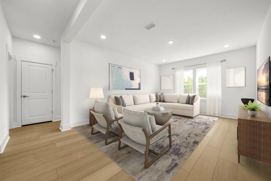 This exquisite home offers four spacious bedrooms and three elegantly designed bathrooms, providing the perfect blend of comfort and sophistication. A dramatic two-story foyer sets the tone, leading into an open-concept main living area where the great room seamlessly connects to the casual dining space and gourmet kitchen. The kitchen is complete with a center island and walk-in pantry, while a covered lanai just off the great room extends the living space outdoors. Complimented by the large backyard, this space is perfect for outdoor gatherings or simply enjoying the natural surroundings. A first-floor secondary bedroom with access to a full hall bath provides ideal accommodations for guests or extended stays. A versatile flex room on the main level offers space for a home office, studio, or cozy retreat. Upstairs, the luxurious primary suite features two closets and a spa-inspired bath with a dual-sink vanity, a shower, and a private water closet. Two additional secondary bedrooms share a full bath and are complemented by a central loft that provides flexible space for entertaining, relaxing, or working from home. Located within a prestigious gated community, residents will have access to resort-style amenities, including a sparkling pool, tennis and pickleball courts, a clubhouse, and more, ensuring a lifestyle of luxury and convenience.