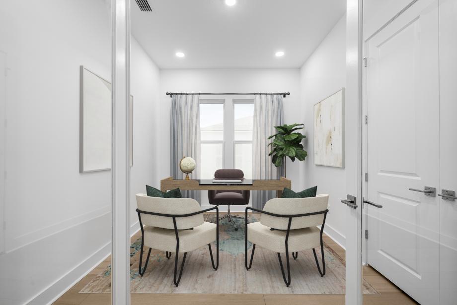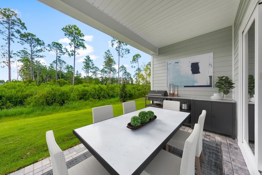 Welcome to this stunning single-story new home located on a private preserve. This 4-bedroom, 3-bathroom residence boasts an inviting office room with glass doors, perfect for working from home or as a flex room. As you enter the home, you are greeted by a grand foyer with soaring 12-foot ceilings, setting the tone for the open and airy feel that flows throughout the entire space. The main living area, including the great room, casual dining space, and gourmet kitchen, features 10-foot ceilings, adding to the sense of spaciousness and elegance. The gourmet kitchen features stainless steel appliances, sleek quartz countertops, and ample cabinet space for all your culinary needs. Just beyond the dining area, a covered lanai with pavers provides the perfect outdoor retreat for year-round enjoyment. The luxurious primary suite includes a generous walk-in closet and a spa-inspired bath featuring a dual-sink vanity, soaking tub, luxe shower, and private water closet. Three secondary bedrooms share hall baths, offering flexibility and space for family or guests. Explore everything this exceptional home has to offer and schedule your appointment today.