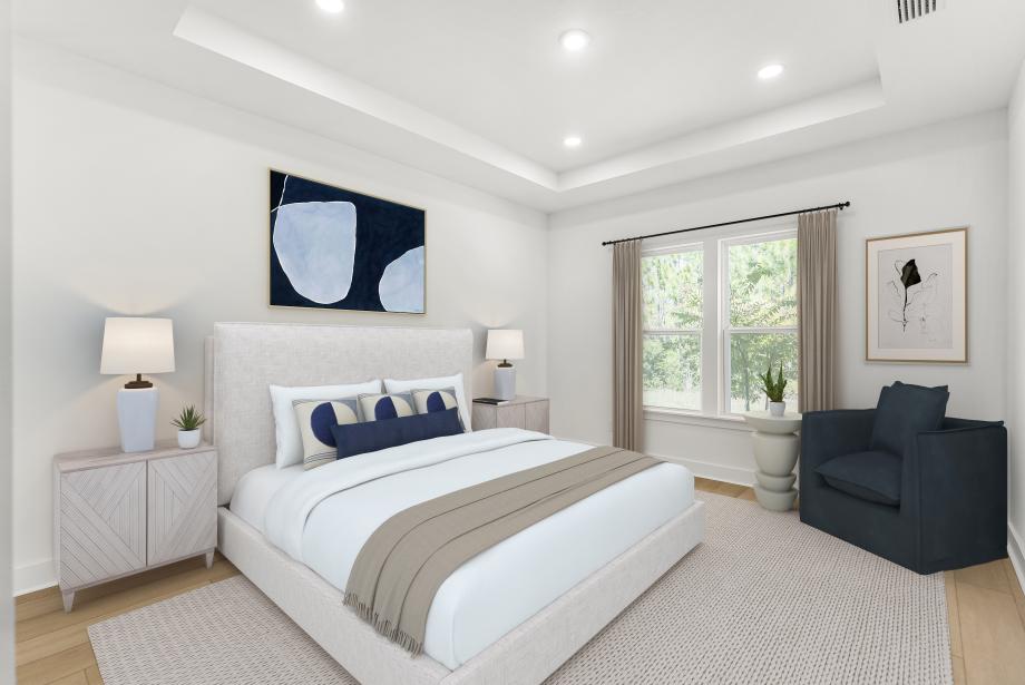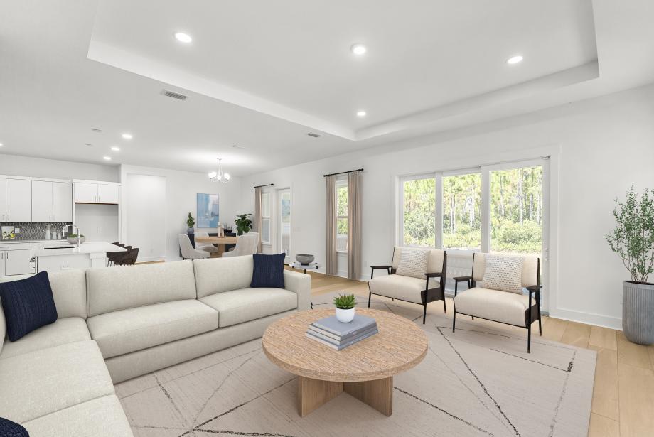 Welcome to this exceptional 4-bedroom, 3-bathroom home nestled in a peaceful gated community. This thoughtfully designed home offers a perfect balance of luxury and functionality, all featured in a single story. The luxurious primary suite with tray ceilings offers a serene retreat with a generous walk-in closet and spa-inspired bath featuring dual vanities, a large shower, and private water closet. Three secondary bedrooms share two hall baths, perfect for family or guests. The gourmet kitchen features high-end finishes and ample cabinetry for all your culinary needs. The expansive great room and casual dining area boasts tray ceilings and abundant natural light, ideal for relaxing and entertaining. Sliding doors to the covered lanai seamlessly extends your living space outdoors, perfect for enjoying the view of the wooded area behind the home. A gas line to the rear of the home is ideal for adding an outdoor kitchen or fire pit for entertaining in style. Additionally, a versatile flex room, perfect for a home office, playroom, or media area, is adaptable to suit your lifestyle, and the 3-car garage provides plenty of room for vehicles and storage. This home backs to a wooded area, offering privacy and a tranquil setting, perfect for nature lovers. This home is a rare find and offers the ideal blend of comfort, style, and convenience.