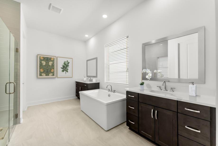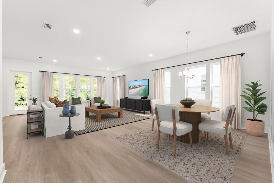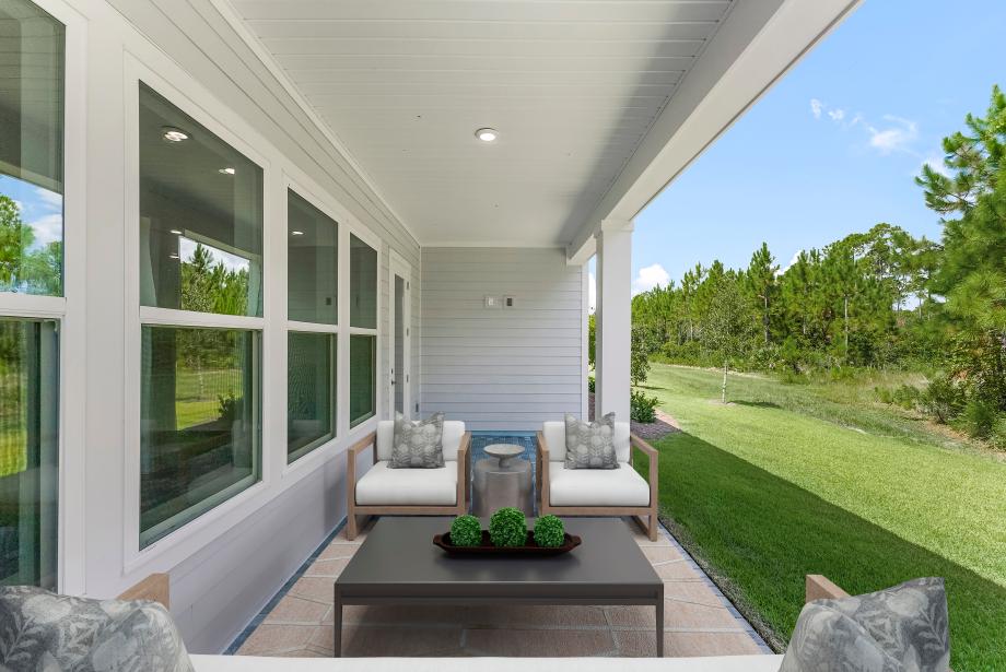 Nestled in a peaceful gated community backing up to tranquil wooded preserves, this stunning 4-bedroom, 3.5-bathroom home offers an ideal combination of comfort, style, and functionality. The open-concept main living area features a casual dining space, great room, and gourmet kitchen with a center island with breakfast bar, wraparound counter, and walk-in pantry. Sliding doors open to a gorgeous covered lanai, offering a seamless indoor/outdoor living space for year-round relaxation and gatherings. Three secondary bedrooms offer living options for family or guests, and a luxurious primary suite features dual walk-in closets and a spa-inspired bath dual vanities, a soaking tub, a deluxe shower, and a private water closet, perfect for unwinding after a long day. Additional highlights include a powder room, centrally located laundry, and a convenient everyday entry from the three-car garage. With future community amenities, you can enjoy access to a refreshing resort-style pool, fitness center, tennis and pickleball courts, an athletic field, and a fun-filled playground perfect for active people. This home is a true gem, offering an unmatched lifestyle with both indoor luxury and outdoor recreational options, perfect for those seeking privacy and serene living.