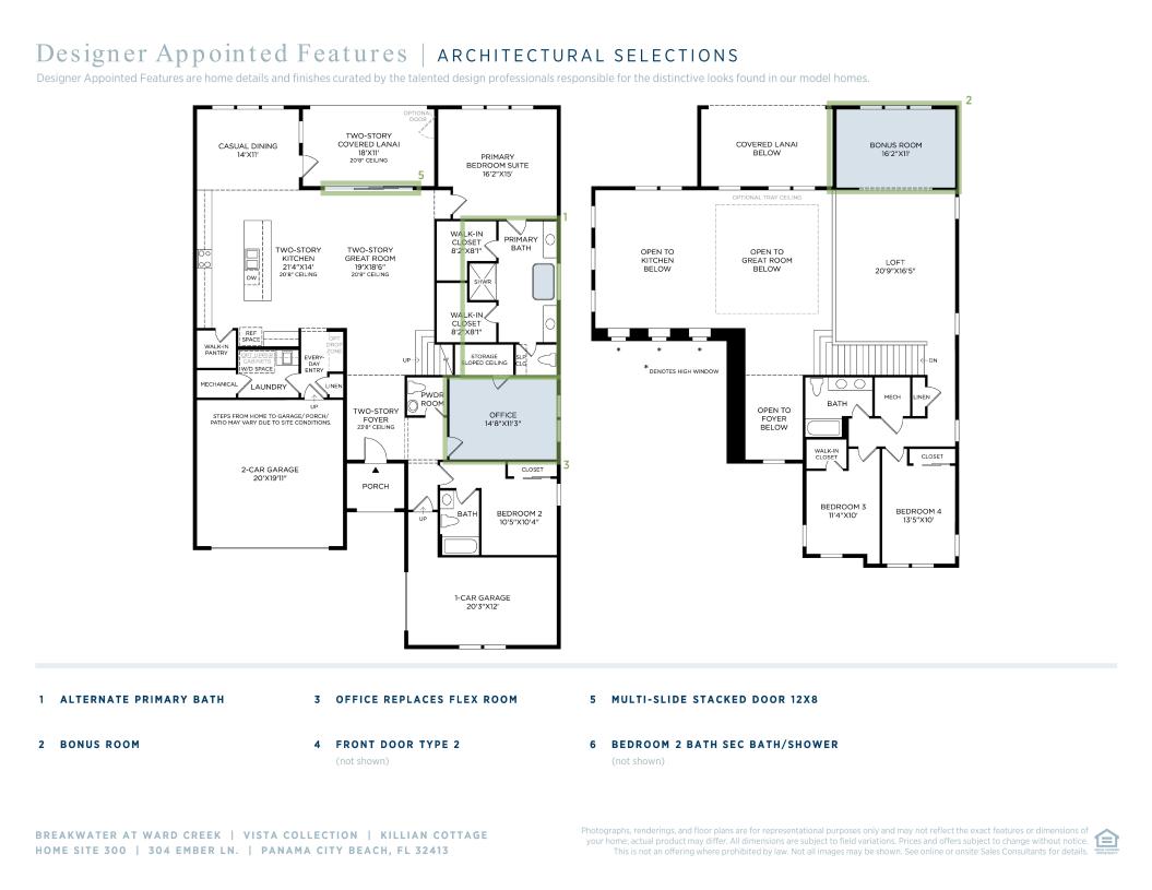 The Killian home design manifests a combination of beauty and practicality with an open floor plan that features a two-story foyer, great room, and kitchen. Upon entering the home, one is greeted by a spacious great room that seamlessly transitions into the casual dining area accompanied by a well-equipped kitchen featuring a large center island with breakfast bar and walk-in pantry. The main level includes an opulent primary suite boasting dual walk-in closets and a deluxe bath with a luxurious shower, private water closet, and dual vanities. An additional flex space on this floor allows for further customization to suit individual lifestyles. Upstairs hosts two secondary bedrooms along with an inviting loft area, which adds extra living space—perfect for recreation or relaxation purposes. Further enhancing its charm is the outdoor covered lanai coupled with a first-floor laundry area and everyday entrance for added convenience.