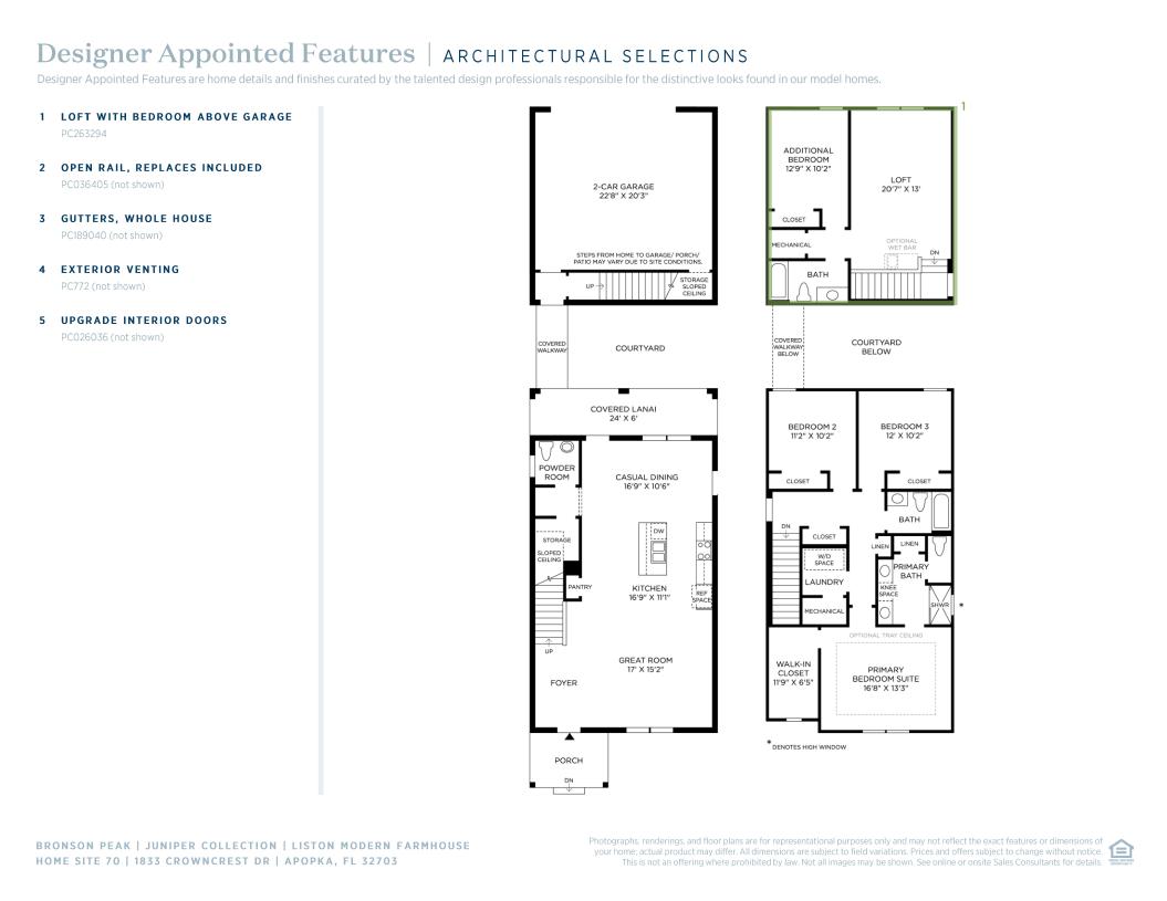 Superior contemporary design. The Liston's welcoming covered porch and entry open immediately onto the expansive great room, with views to the lovely dining room and desirable large covered lanai beyond. The well-equipped gourmet kitchen is enhanced by a large center island with breakfast bar, plenty of counter and cabinet space, and generous walk-in pantry. The gorgeous primary bedroom suite is highlighted by a massive walk-in closet and spa-like primary bath with dual-sink vanity, large luxe shower, linen storage, and private water closet. Sizable secondary bedrooms feature ample closets and shared hall bath. Additional highlights include a convenient powder room, centrally located laundry, and additional storage.