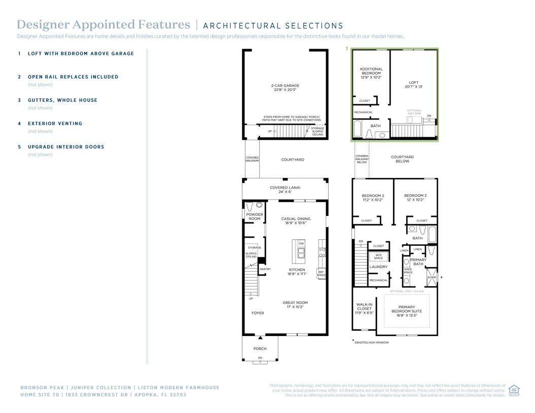 Superior contemporary design. The Liston's welcoming covered porch and entry open immediately onto the expansive great room, with views to the lovely dining room and desirable large covered lanai beyond. The well-equipped gourmet kitchen is enhanced by a large center island with breakfast bar, plenty of counter and cabinet space, and generous walk-in pantry. The gorgeous primary bedroom suite is highlighted by a massive walk-in closet and spa-like primary bath with dual-sink vanity, large luxe shower, linen storage, and private water closet. Sizable secondary bedrooms feature ample closets and shared hall bath. Additional highlights include a convenient powder room, centrally located laundry, and additional storage.