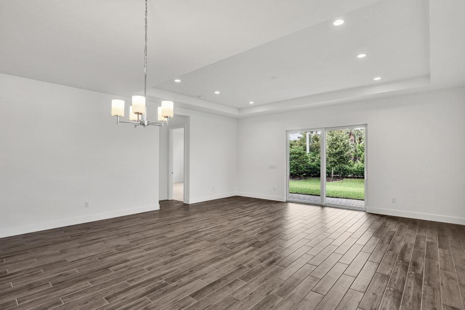 This stunning open-concept home seamlessly blends indoor and outdoor living, perfect for entertaining and everyday relaxation. The modern layout features three spacious bedrooms and two and a half luxurious baths, with plenty of natural light flowing in. The oversized primary suite is a true retreat, complete with a spa-like bathroom and walk-in closet. The well-designed kitchen overlooks a sizable casual dining area and is complete with an oversized center island with breakfast bar, a wraparound counter and cabinet space, and a roomy pantry. The spacious flex space offers versatile living, ample for an office or fourth guest bedroom. With a three-car garage and ample storage, this home offers both style and practicality for the modern homeowner.