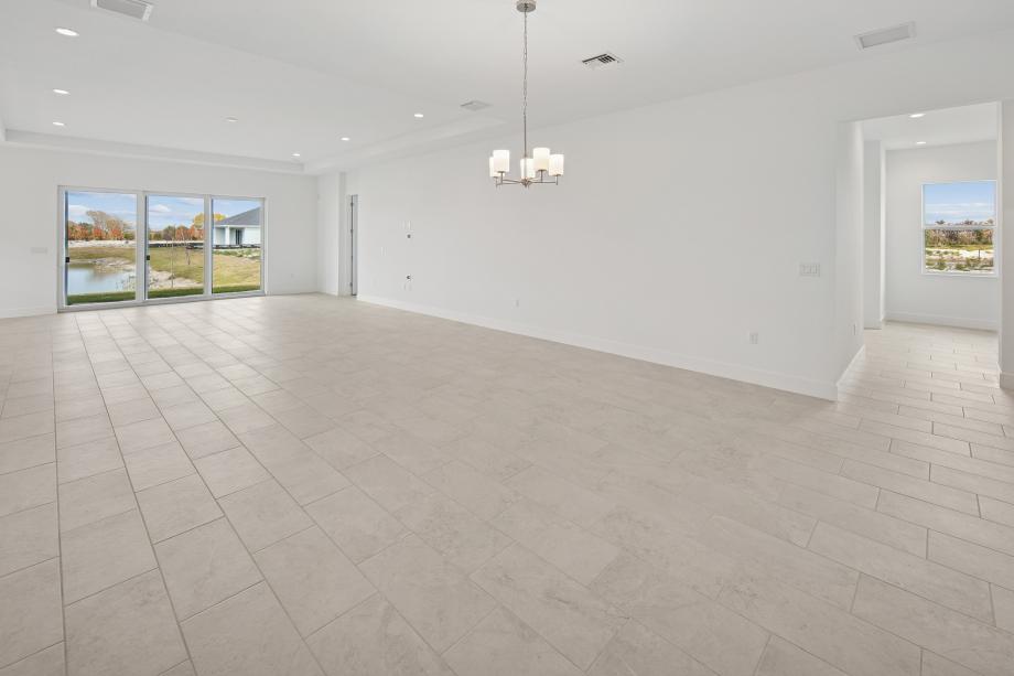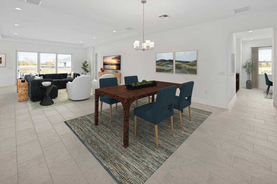The Winterberry brings style to entertaining and everyday living. The welcoming foyer draws guests into a grand formal dining room and an elegant great room featuring a fabulous tray ceiling and access to a beautiful covered lanai. Adjacent to a bright casual dining area, the well-equipped kitchen boasts ample counter space, a large center island with breakfast bar, and a walk-in pantry. The secluded primary bedroom is a true retreat featuring a spacious walk-in closet and a relaxing primary bath with dual vanities, a luxe shower, linen storage, and a private water closet. Two secondary bedrooms toward the front of the home provide ample closets and quick access to a shared full hall bath. Other highlight include a versatile flex room suitable for a variety of purposes, centrally located laundry, an everyday entry, and a powder room.