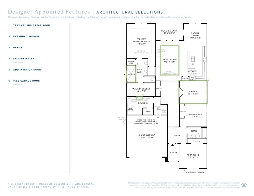 Charming urban appointments. The Ana's inviting porch and welcoming foyer flow past a spacious flex room, with views to the expansive great room and desirable covered lanai beyond. The well-equipped gourmet kitchen overlooks a bright casual dining area, and is highlighted by a large center island with breakfast bar, plenty of counter and cabinet space, and ample pantry. The secluded primary bedroom suite is complete with a huge walk-in closet and spa-like primary bath with dual-sink vanity, large luxe shower, linen storage, and private water closet. Secondary bedrooms feature roomy closets and shared hall bath. Additional highlights include a convenient powder room and everyday entry, centrally located laundry, and additional storage.