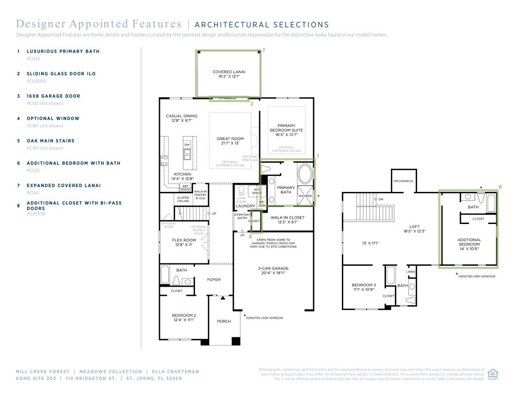 Modern luxe lifestyle. The Ella's inviting covered porch and welcoming foyer flow past the spacious flex room, offering views to the expansive great room and desirable large covered lanai beyond. The well-designed gourmet kitchen is enhanced by a large center island with breakfast bar, plenty of counter and cabinet space, and sizable walk-in pantry. The lovely primary bedroom suite is highlighted by a king-size walk-in closet and spa-like primary bath with dual-sink vanity, large luxe shower, and private water closet. The secondary bedroom features a roomy closet and shared hall bath. Secluded on the second floor is a bedroom suite with closet and shared hall bath, overlooking a generous loft. Additional highlights include a convenient everyday entry, centrally located laundry, and additional storage.