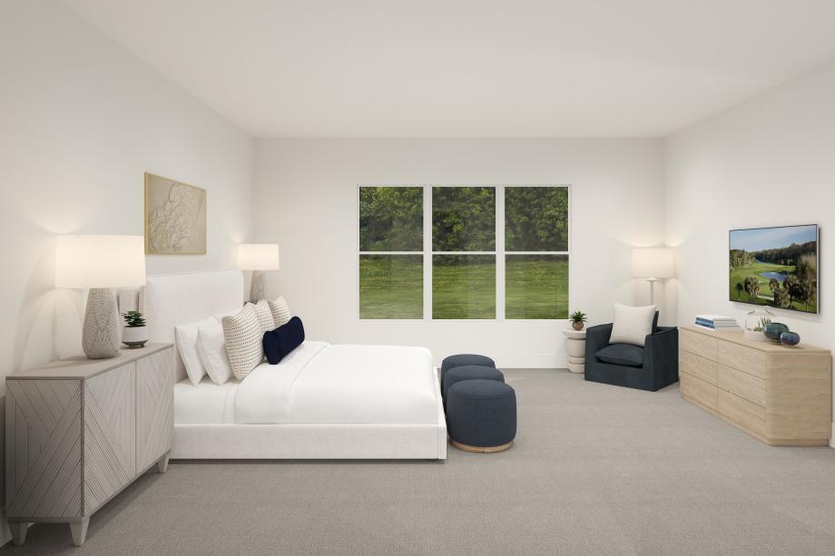 Contemporary deluxe living. The Dexter's inviting expanded covered entry and impressive two-story foyer open onto the expansive great room, with views to the desirable covered lanai beyond. The well-equipped gourmet kitchen overlooks a bright casual dining area, and is enhanced by a large center island with breakfast bar, plenty of counter and cabinet space, and huge walk-in pantry. The marvelous primary bedroom suite is highlighted by dual walk-in closets and deluxe primary bath with dual-sink vanity, large soaking tub, luxe shower, and private water closet. The sizable secondary bedroom features a walk-in closet and private bath. Additional highlights include a secluded office, convenient powder room and everyday entry, centrally located laundry, and additional storage.