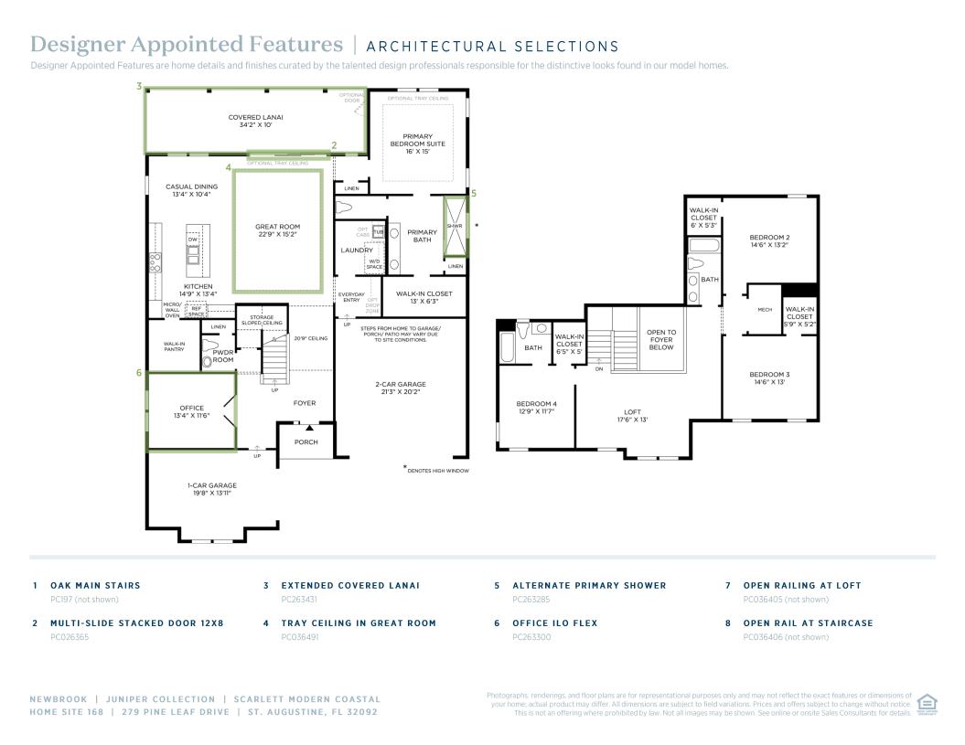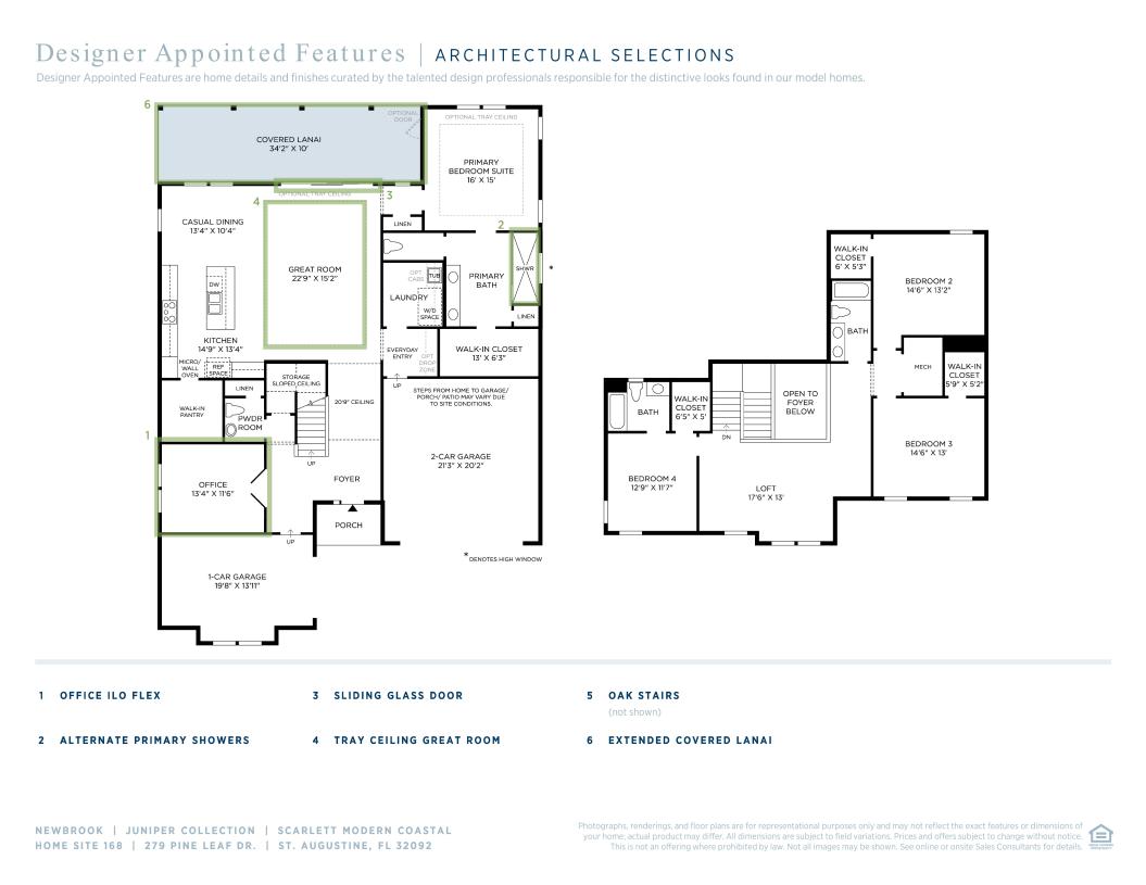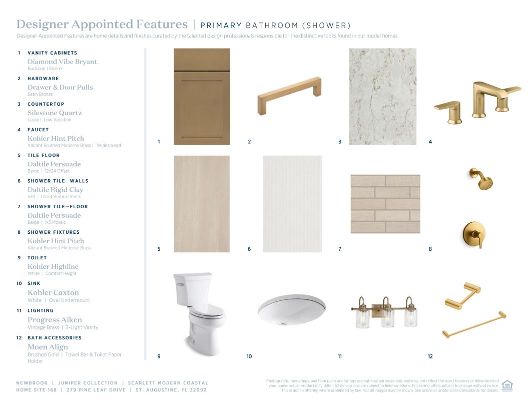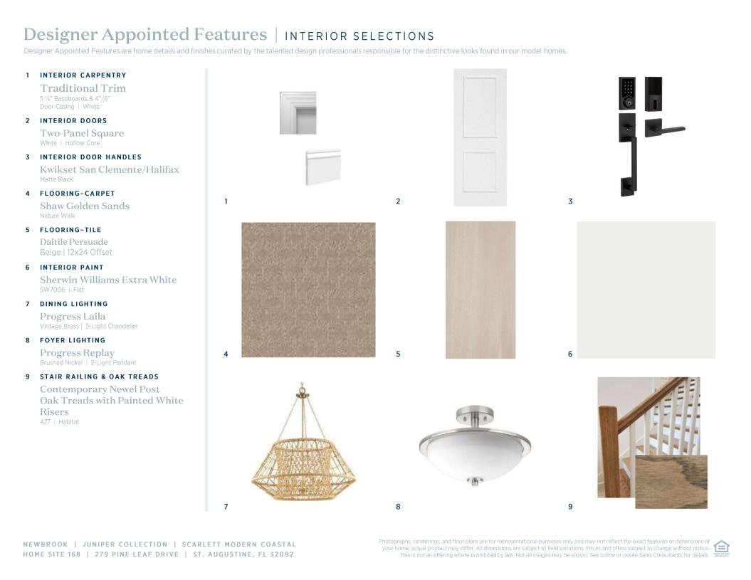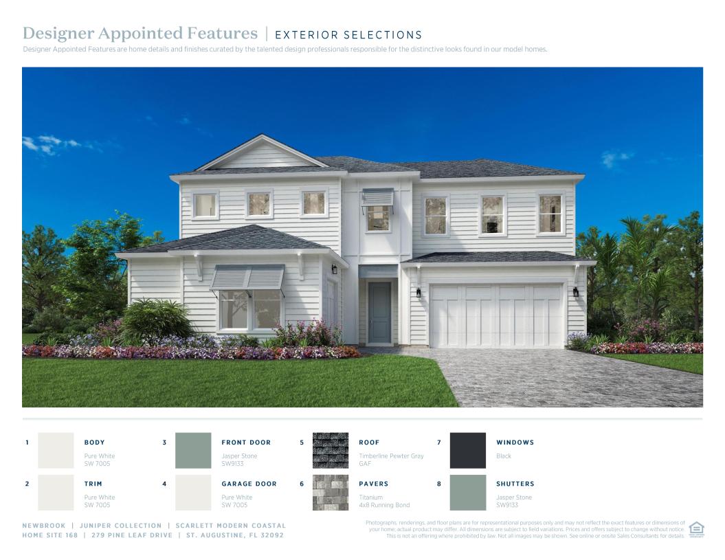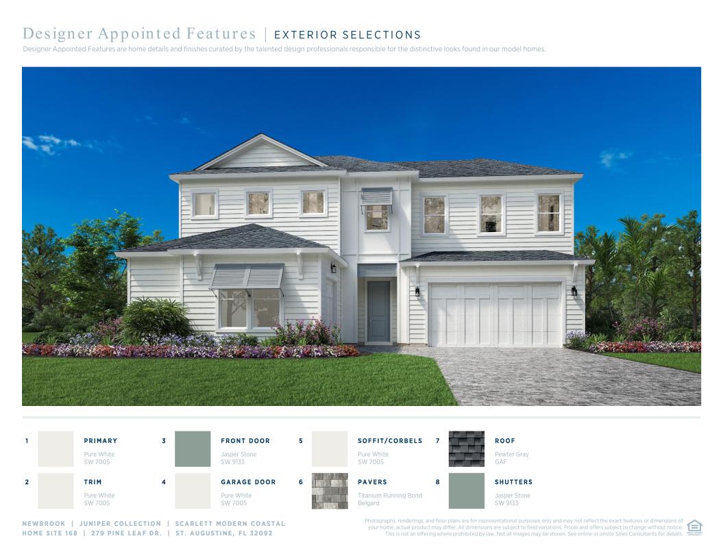 This Scarlett Modern Coastal is thoughtfully designed and will be move-in ready by Summer 2025. With 4 bedrooms, 3.5 bathrooms, a dedicated office, and an upstairs loft, this home offers the perfect balance of open living and private space. At the heart of the Scarlett is an expansive great room featuring a tray ceiling and a 12’ sliding glass door that opens to an extended covered lanai, blending indoor and outdoor living. The kitchen features stacked cabinetry to the ceiling, quartz countertops, a 36” gas cooktop, wall oven/microwave combination, and decorative end panels, all centered around a large island—ideal for entertaining and everyday living. Upstairs, the open loft and two additional bedrooms create a separate space perfect for guests, kids, or movie nights. The first-floor primary suite includes an expanded walk-in shower with frameless glass enclosure, dual vanities, and a spacious walk-in closet. Additional upgrades include oak stairs with open railing and enhanced trim details throughout the main living areas. Opening in Summer 2026, Newbrook’s private amenity center will feature a clubhouse, fitness center, and resort-style pool—just steps from your front door.