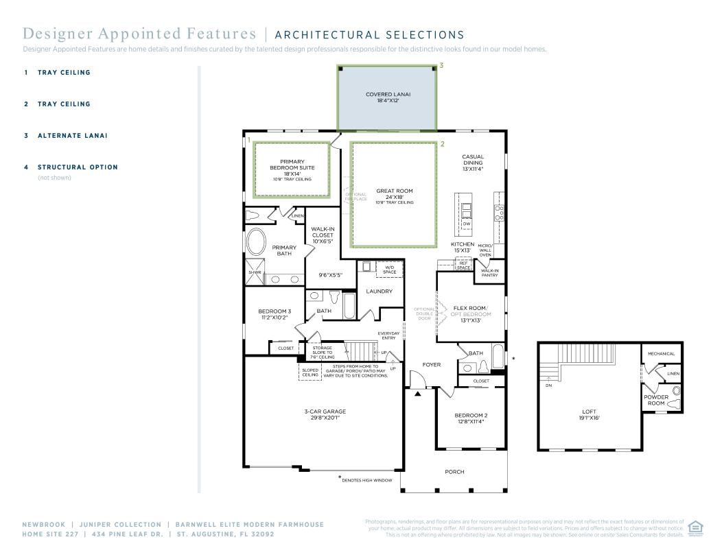 The Barnwell Elite immediately impresses with a charming foyer revealing a stunning great room with a tray ceiling and a spacious covered lanai beyond. Perfect for entertaining, the well-designed kitchen features a sizable center island with breakfast bar, plenty of counter and cabinet space, and an ample walk-in pantry. The primary bedroom is a true retreat with a sophisticated tray ceiling, a large walk-in closet, and an impressive spa-like primary bath complete with a dual-sink vanity, a soaking tub, a luxe shower, linen storage, and a private water closet. Roomy secondary bedrooms share separate full hall baths. On the second floor, an airy loft provides an excellent space for gathering or relaxing. Additional highlights include a versatile flex space, an everyday entry, centrally located laundry, a second-floor powder room, and extra storage.