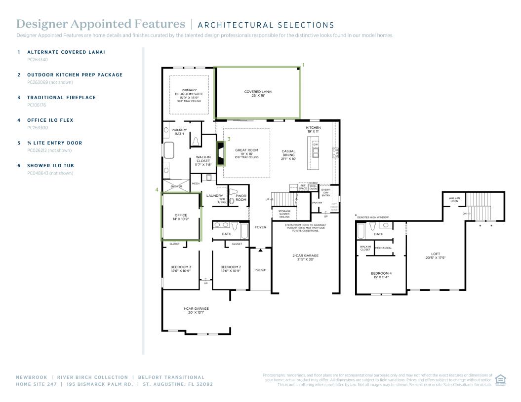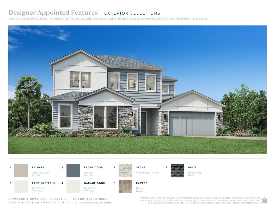 The Belfort is wonderfully crafted, boasting an impressive two-story open floor plan. Upon entering the foyer, you are greeted by a luxurious great room with an exquisite tray ceiling and beautiful views of the covered lanai. Adjacent to the great room is a casual dining area and the well-equipped kitchen that features a large center island with breakfast bar, ample counter and cabinet space, and a roomy pantry. A spacious flex room off the foyer provides additional living space that can be tailored to suit your preferences. Enhanced by a tray ceiling, the primary bedroom suite offers a large walk-in closet, and a serene primary bath defined by dual vanities, a freestanding tub, a luxe shower, and a private water closet. The second floor is highlighted by a generous loft as well as a sizable secondary bedroom with a walk-in closet and shared hall bath. Two additional secondary bedrooms are secluded off the foyer, featuring ample closets and sharing a hall bath. The Belfort also offers a convenient powder room, an everyday entry, easily accessible laundry, and plenty of storage throughout.