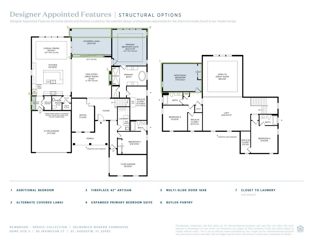The spacious foyer of the distinctive Delmonico opens to a private office with a double-door entry and to the two-story great room with a fireplace. The sunlit primary bedroom suite features a coffered ceiling, a generously sized walk-in closet, and a spa-like primary bath with dual vanities, an oversized shower with two seats, and a large tub with a curved wall surround and a private water closet. The spacious loft overlooks the great room and is adjacent to secondary bedrooms with private baths and walk-in closets. Additional highlights include an elegant covered entry, a first-floor bedroom with a private bath, an expansive gourmet kitchen, a dining area with a coffered ceiling, and a covered lanai.