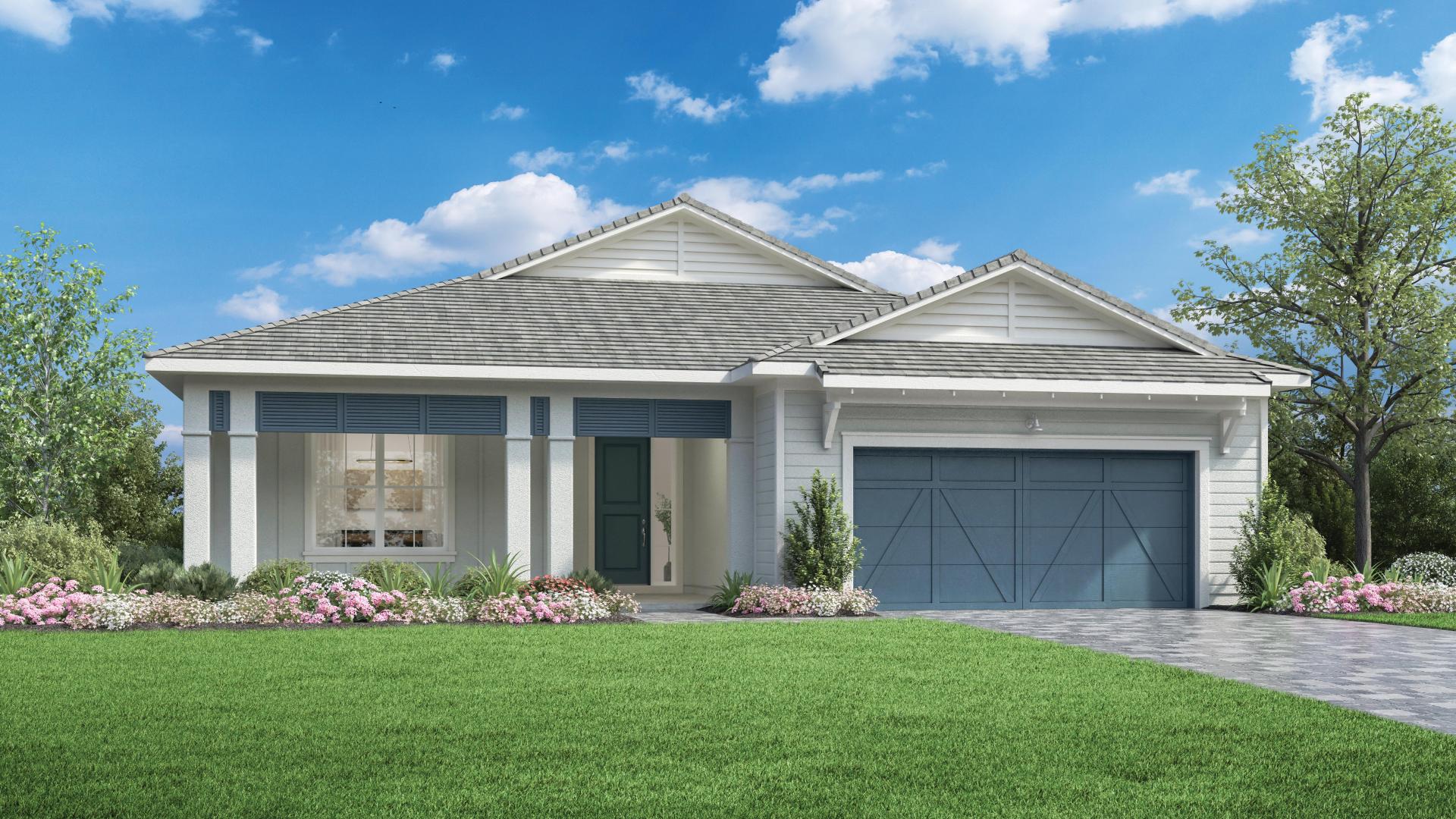 The Isabella's inviting covered porch and entry lead into the stunning foyer, revealing the expansive great room with coffered ceiling, bright casual dining area, and spacious covered lanai beyond. The well-designed kitchen features a large center island with breakfast bar, plenty of counter and cabinet space, and a sizable walk-in pantry. The sophisticated primary bedroom suite is enhanced by a lovely coffered ceiling, dual walk-in closets, and deluxe primary bath with dual-sink vanity, large soaking tub, luxe glass-enclosed shower, linen storage, and private water closet. Secondary bedrooms feature ample closets and shared bath with separate dual-sink vanity areas. Additional highlights include a private flex room off the foyer, a convenient powder room, centrally located laundry, and additional storage.