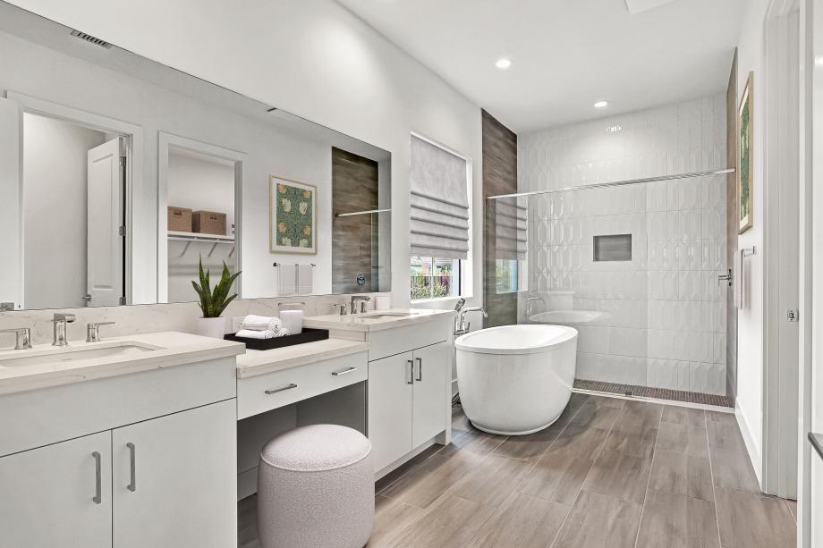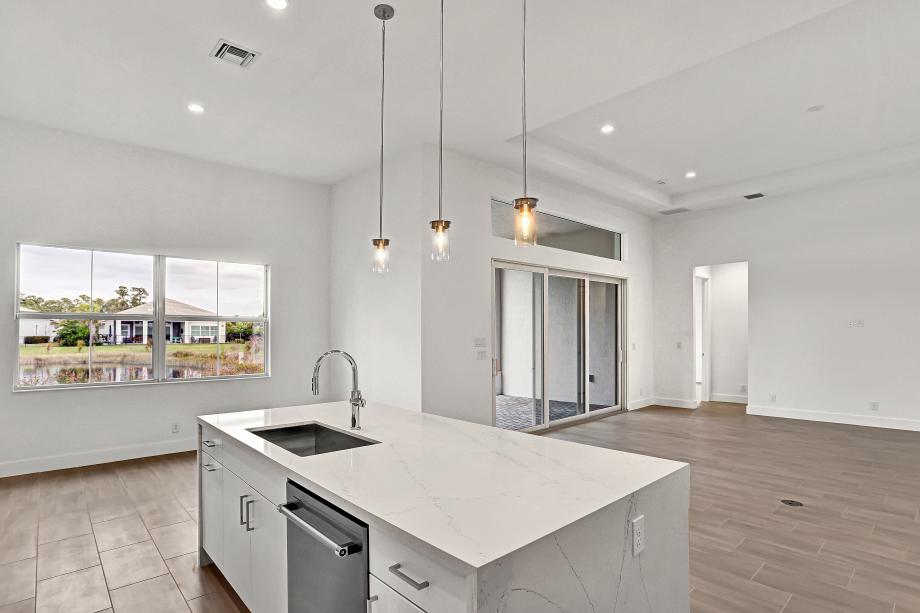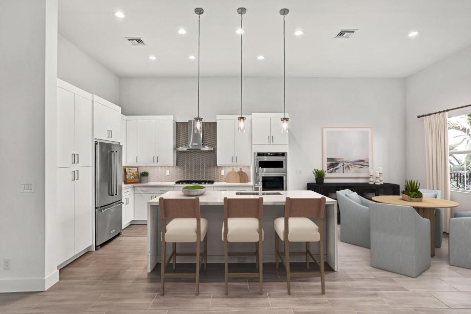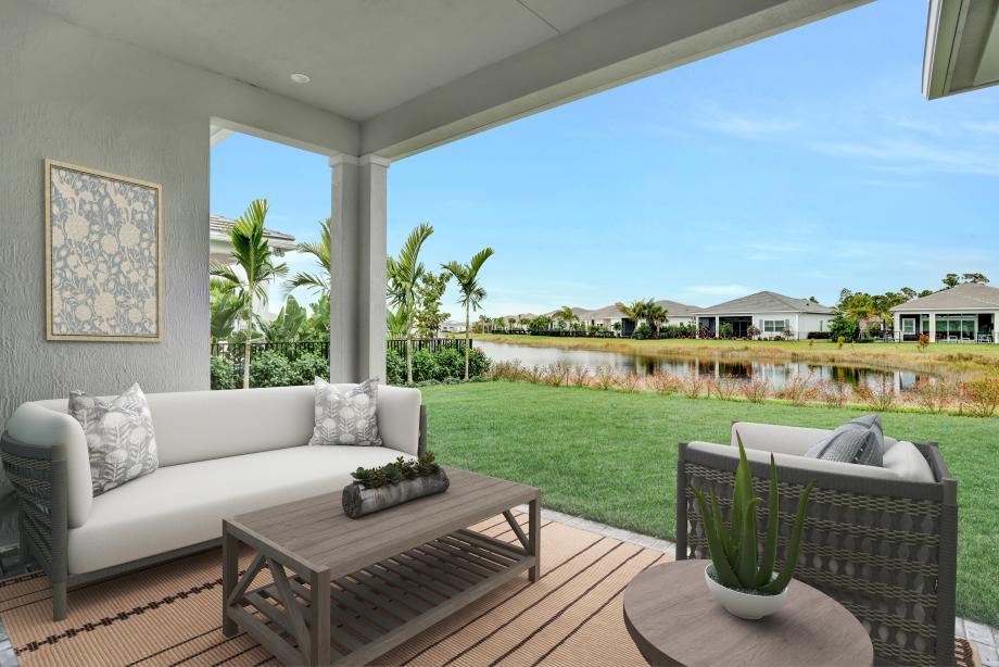 The Shelby's inviting covered entry and foyer with tray ceiling flow into the expansive great room and dining room with tray ceilings, and views of the desirable covered lanai beyond. The well-designed kitchen overlooks a bright casual dining area, and features a large center island with breakfast bar, plenty of counter and cabinet space, and a generous pantry. The serene primary bedroom suite is enhanced by an elegant tray ceiling, spacious walk-in closet, and deluxe primary bath with dual-sink vanity, large soaking tub, luxe glass-enclosed shower with seat, and private water closet. Spacious secondary bedrooms feature walk-in closets, one with a private full bath, the other with a shared full hall bath. Additional highlights include a versatile flex room off the foyer, centrally located laundry, and additional storage.