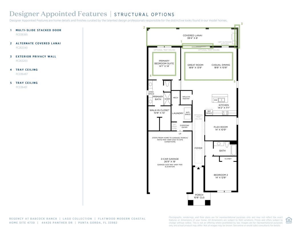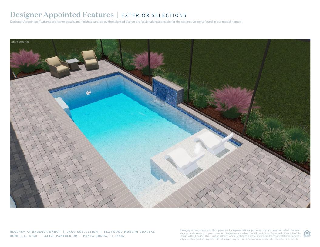 Nestled in a sought-after neighborhood, this residence combines modern amenities with thoughtful craftsmanship. The Flatwood Coastal is beautifully designed, offering 1,979 square feet of luxurious living space, equipped with two spacious bedrooms, two full bathrooms, a flex space, and a two-car garage. This home includes a gorgeous chef's kitchen, including additional cabinetry, a wall oven, a wall microwave, a 36" gas cooktop, and a hooded vent. Enjoy your outdoor living space, with a 40' wide covered lanai perfect for entertaining guests.