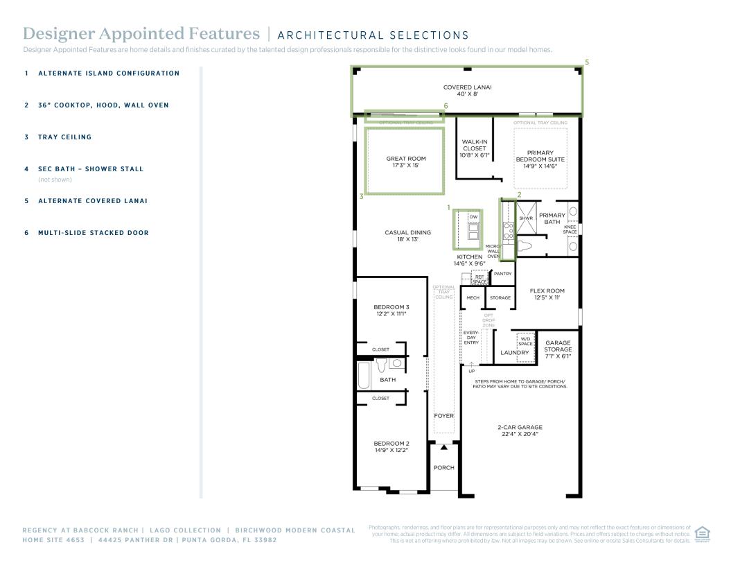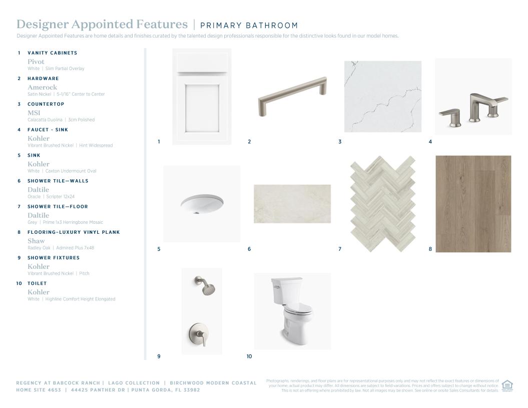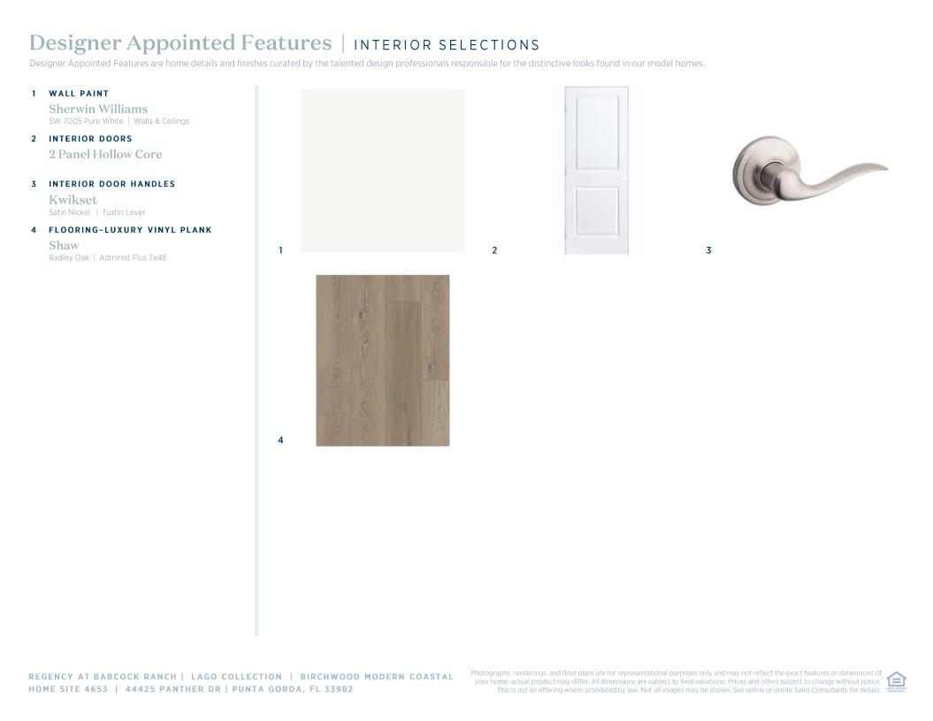 The lovely Birchwood opens with an extended foyer hallway that flows into a bright casual dining area and an elegant great room with a coffered ceiling and access to a stunning covered lanai. The well-designed kitchen is enhanced by a large center island with breakfast bar, plenty of counter and cabinet space, and a generous pantry. Defining the stylish primary bedroom suite is a gorgeous coffered ceiling, an ample walk-in closet, and a charming primary bath with dual vanities, a large luxe shower, and a private water closet. Secondary bedrooms feature roomy closets and share a hall bath. Additional highlights include a secluded flex room, easily accessible laundry, an everyday entry, and ample additional storage.
