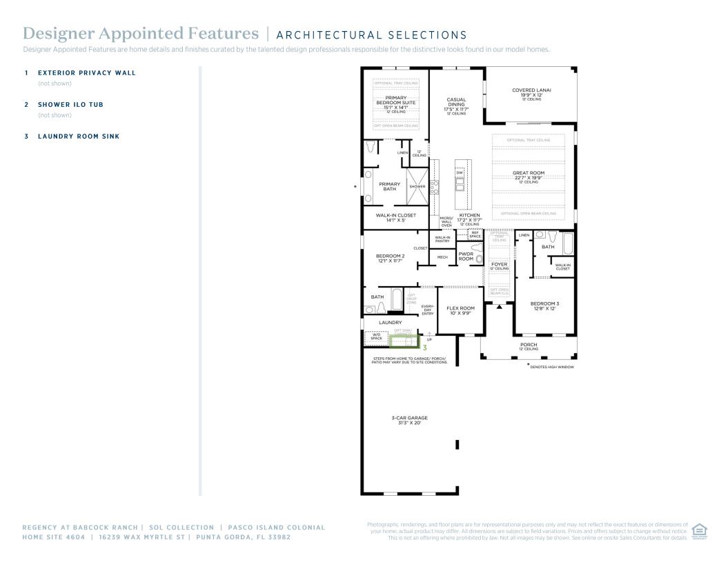 Wonderfully designed with elegant fixtures throughout an open-concept floor plan, the Pasco leaves a lasting impression. An elegant foyer flows into the beautiful great room, enhanced with a coffered ceiling and views of the covered lanai. Adjacent to the bright casual dining area is the expertly crafted kitchen, offering a large center island with breakfast bar, ample counter and cabinet space, and a sizable walk-in pantry. The charming primary bedroom suite is complemented by a palatial walk-in closet and a gracious primary bath with a dual-sink vanity, a large luxe shower, linen storage, and a private water closet. Secondary bedrooms, one with a walk-in closet and the other with a roomy closet, are secluded off the foyer and feature private baths. Additionally featured in the Pasco is a versatile flex room, easily accessible laundry off the everyday entry, a powder room, and ample additional storage.