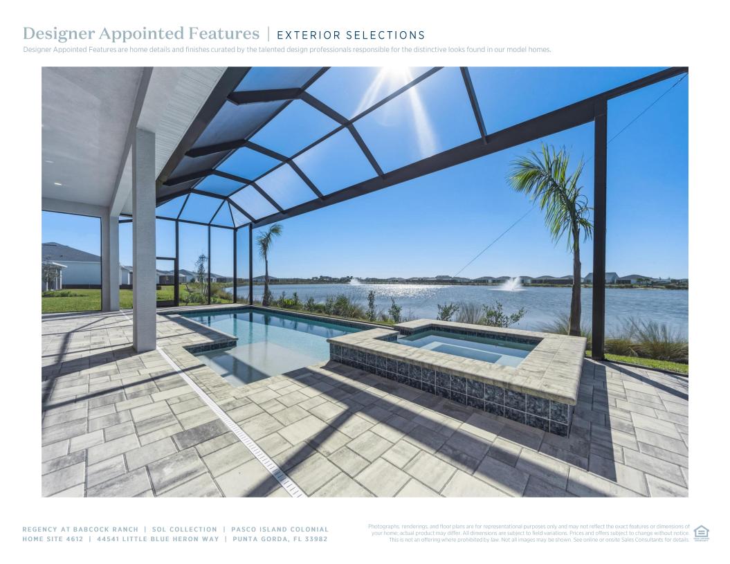 Discover refined elegance in this stunning Pasco Island Colonial, a 2,505-square-foot masterpiece perfectly positioned on a spacious homesite with direct south-facing views of the lake. With 12-foot ceilings throughout, this residence is designed to impress, offering three bedrooms, an office, 3.5 baths, and a side-load three-car garage. The great room is enhanced by a tray ceiling and open-concept floor plan, connecting the gourmet kitchen, casual dining area, and covered lanai, making it ideal for both everyday living and entertaining. Each bedroom features its own private en-suite bath, ensuring ultimate comfort and privacy. The primary suite is a true retreat, complete with a large walk-in closet and a luxurious spa-inspired bathroom featuring an oversized walk-in shower and a freestanding tub. Designed for seamless indoor-outdoor living, this home has an exceptional outdoor space complete with a pool, offering the ultimate setting for relaxation while enjoying the breathtaking lake views.