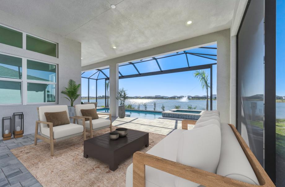 Discover refined elegance in this stunning Pasco Island Colonial, a 2,505-square-foot masterpiece perfectly positioned on a spacious homesite with direct south-facing views of the lake. With 12-foot ceilings throughout, this residence is designed to impress, offering three bedrooms, an office, 3.5 baths, and a side-load three-car garage. The great room is enhanced by a tray ceiling and open-concept floor plan, connecting the gourmet kitchen, casual dining area, and covered lanai, making it ideal for both everyday living and entertaining. Each bedroom features its own private en-suite bath, ensuring ultimate comfort and privacy. The primary suite is a true retreat, complete with a large walk-in closet and a luxurious spa-inspired bathroom featuring an oversized walk-in shower and a freestanding tub. Designed for seamless indoor-outdoor living, this home has an exceptional outdoor space complete with a pool, offering the ultimate setting for relaxation while enjoying the breathtaking lake views.