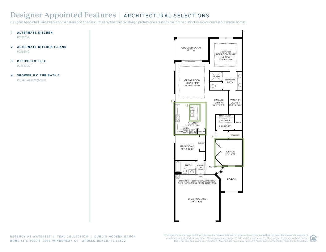 The Dunlin home design offers an elegant and convenient single-story floor plan. From a generous porch, the foyer flows past a versatile flex room into the beautiful main living space, including a casual dining area, and a great room with an elegant tray ceiling. Lovely sliding doors lead to a stunning covered lanai, perfect for entertaining. The l-shaped kitchen features a spacious center island with breakfast bar, a useful pantry cabinet, and plenty of cabinet and counter space. Retreat to the secluded primary bedroom, enhanced by a tray ceiling, a walk-in closet, and a serene bath with a dual-sink vanity, a luxe shower, and a private water closet. A charming secondary bedroom is located close to a full hall bath. Other highlights include an everyday entry, centrally located laundry, and extra storage throughout.
