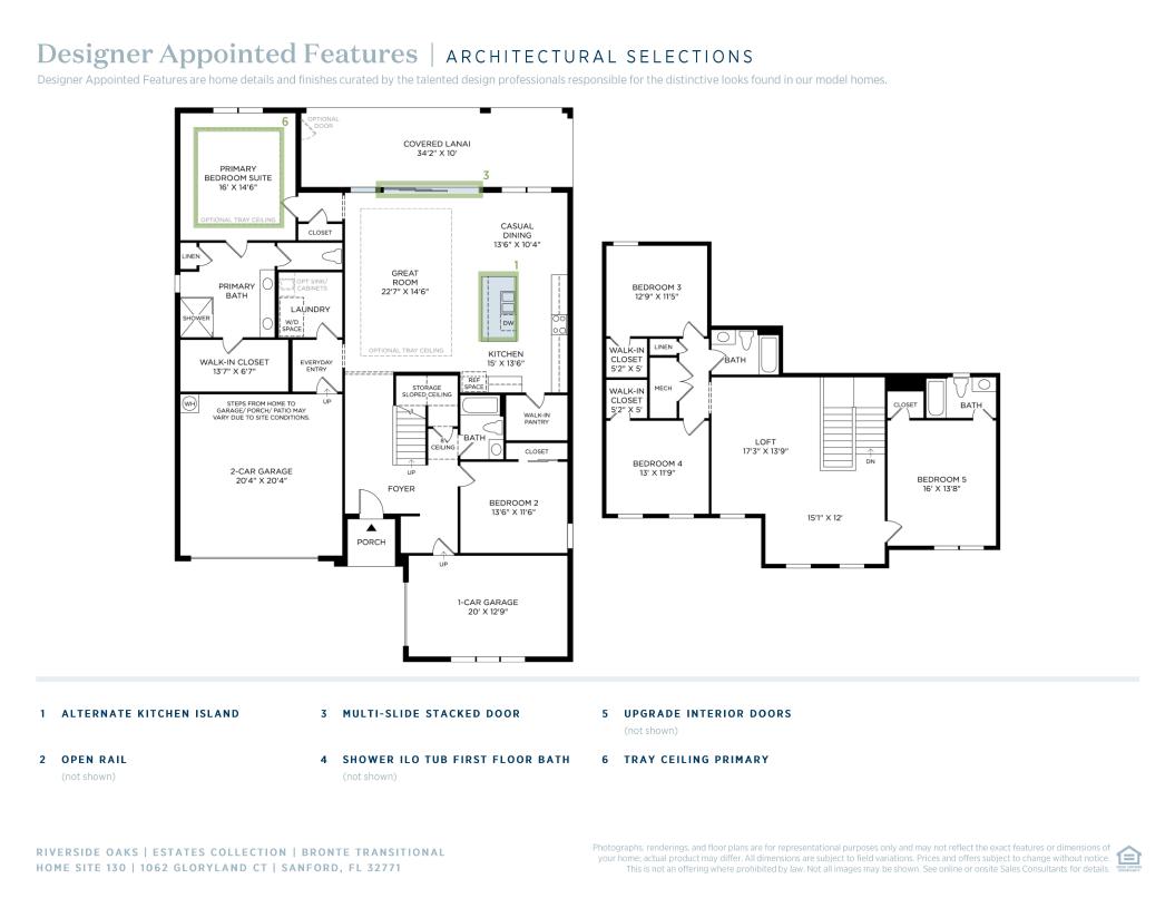 Featuring distinct architecture with elegant features, the Bronte is the epitome of luxury. An inviting foyer opens into the palatial great room with coffered ceiling that presents alluring views of the spacious covered patio beyond. A cozy casual dining area overlooks well-appointed kitchen that features a large center island with breakfast bar, ample counter and cabinet space, and a desirable walk-in pantry. Tucked away off the great room is the magnificent primary bedroom suite that’s highlighted by an expansive walk-in closet and tranquil primary bath with dual-sink vanity, deluxe shower, linen storage, and private water closet. Secondary bedrooms, one with a primary bath and two with a shared hall bath, are central to a versatile loft space and feature sizable closets. An additional bedroom with closet and private bath can be found off the foyer. Also featured within the Bronte is convenient everyday entry, centrally located laundry, and ample additional storage.