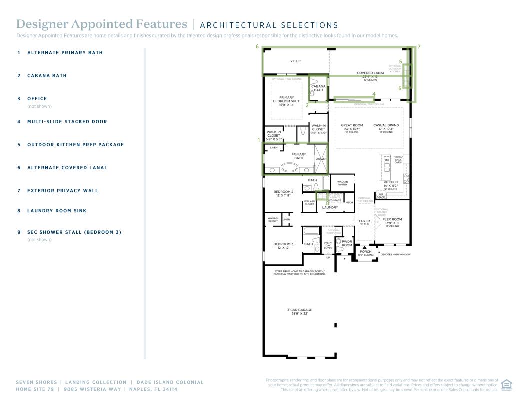 The Dade leaves a lasting impression with expansive entertaining spaces and relaxing retreats. An airy foyer and flex room reveal the open-concept great room and casual dining area with views to the desirable covered lanai beyond. Highlighting the well-appointed kitchen are a large center island with breakfast bar, wraparound counter and cabinet space, and an ample walk-in pantry. The elegant primary bedroom suite is enhanced by dual walk-in closets and a lovely primary bath with dual vanities, a large luxe shower, linen storage, and a private water closet. Secondary bedrooms feature walk-in closets and private baths. Additional highlights include a sizable workspace off the great room, easily accessible laundry and a powder room off the everyday entry, and additional storage throughout.