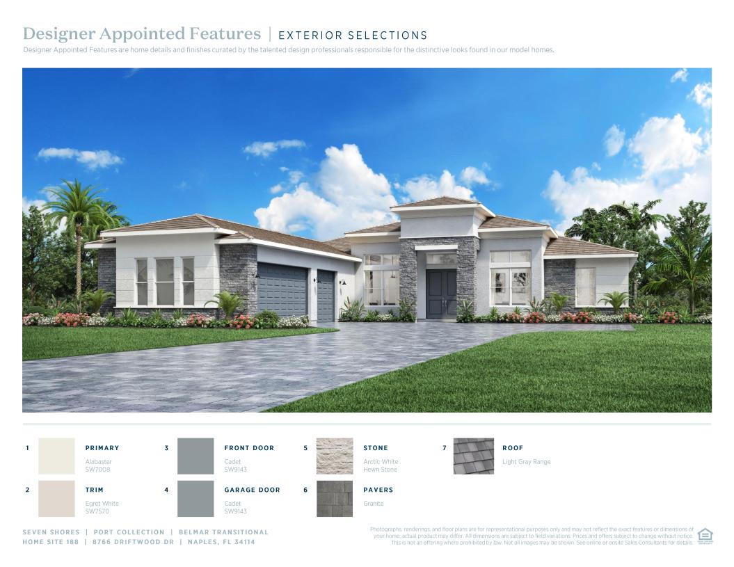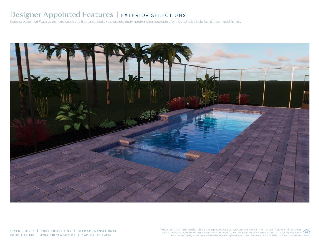 The Belmar Transitional offers an exceptional 3,291 square feet of luxurious living space, featuring 4 bedrooms, 4.5 bathrooms, and a flex room, making it perfect for both family living and entertaining. This home is designed for those who love the outdoors with a stunning private pool and spa, surrounded by lush landscaping and a quarry lake view with northern rear exposure for year-round enjoyment. Inside, the home offers an open-concept floor plan with a spacious great room and a chef’s kitchen complete with a large island, plenty of counter space, and a walk-in pantry. The primary suite features dual walk-in closets and a spa-like bath, while the impact glass windows and doors provide both storm protection and added security.