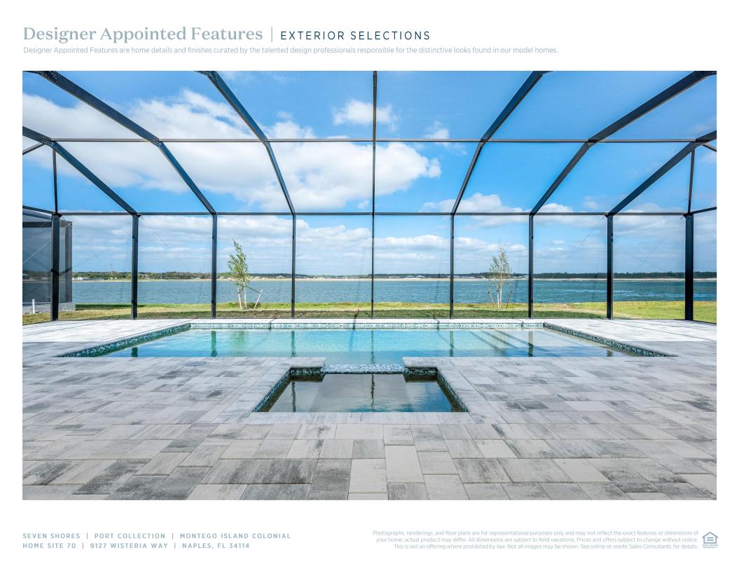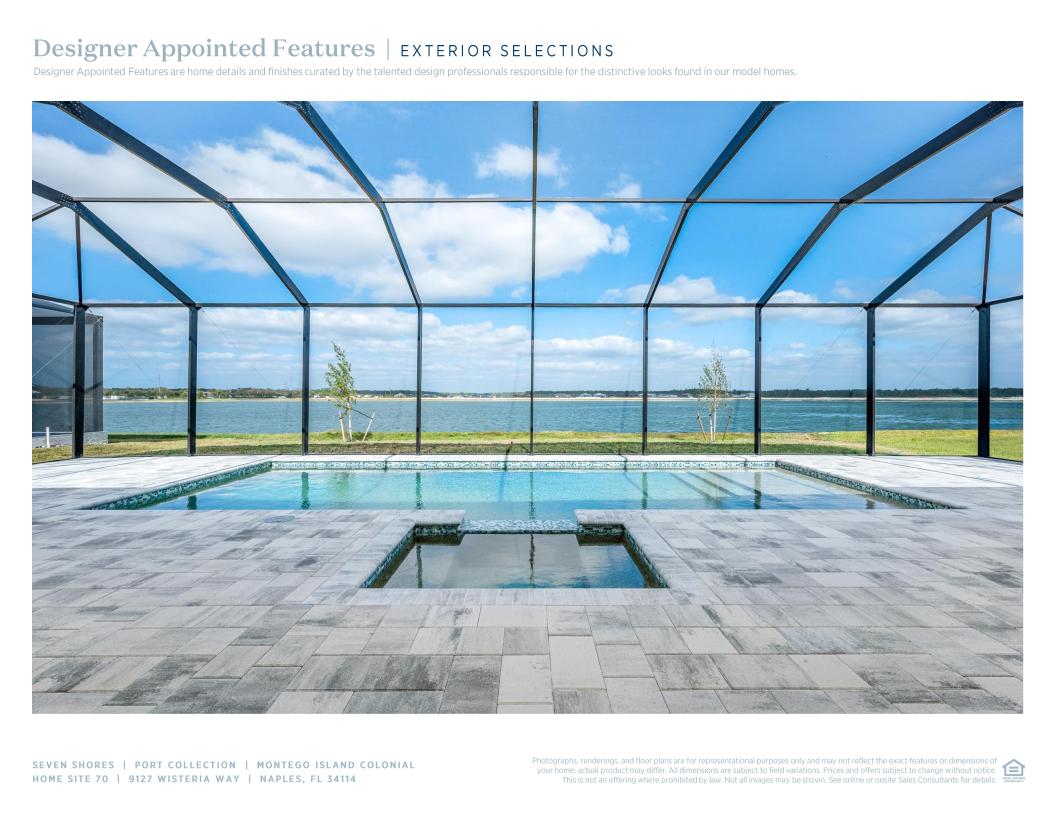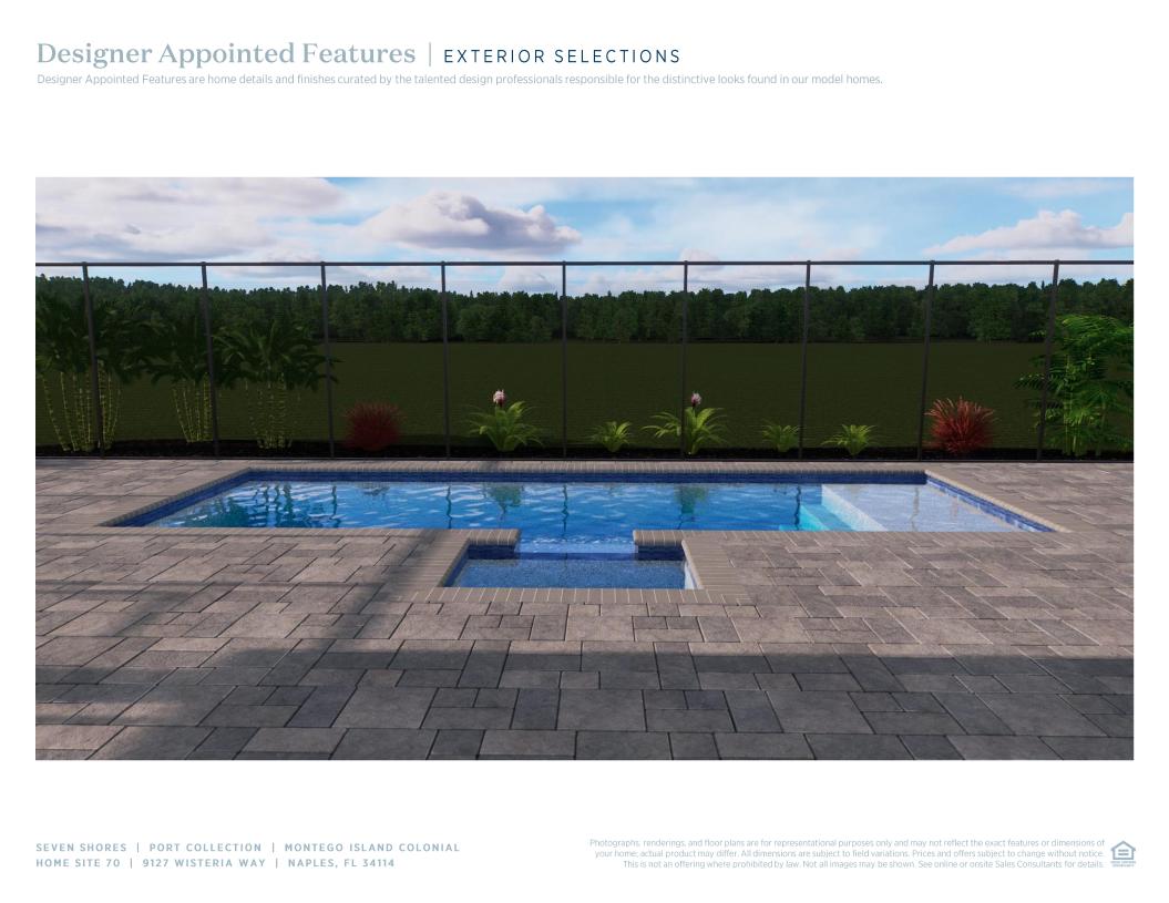 Step into luxury with the Montego Island Colonial, featuring a private pool and spa with stunning quarry lake views and northern rear exposure, perfect for year-round outdoor relaxation. This 5-bedroom, 5.5-bath home spans over 4,900 square feet and offers a well-designed 2-story layout with a grand foyer entrance. Inside, the home boasts a two-story great room, an oversized kitchen island, and ample counter space, seamlessly connecting to the casual dining area. The primary suite offers a spa-like bath and dual walk-in closets, while the second floor features a loft and bonus room for added versatility.