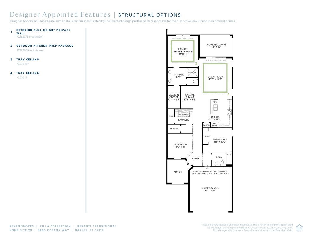 The stunning Meranti Transitional home offers thoughtful design upgrades, including upgraded floor tile throughout, stylish cabinets, and elegant quartz countertops. A bright foyer leads into a spacious great room with a casual dining area and views of the beautiful covered lanai. The well-appointed kitchen features a large center island with a breakfast bar, plenty of counter space, and a walk-in pantry. The primary suite boasts a spacious walk-in closet and a luxurious bath with a dual-sink vanity and large shower. The ample secondary bedroom features a generous closet and a shared hall bath. Additional highlights include easily accessible laundry and additional storage throughout.