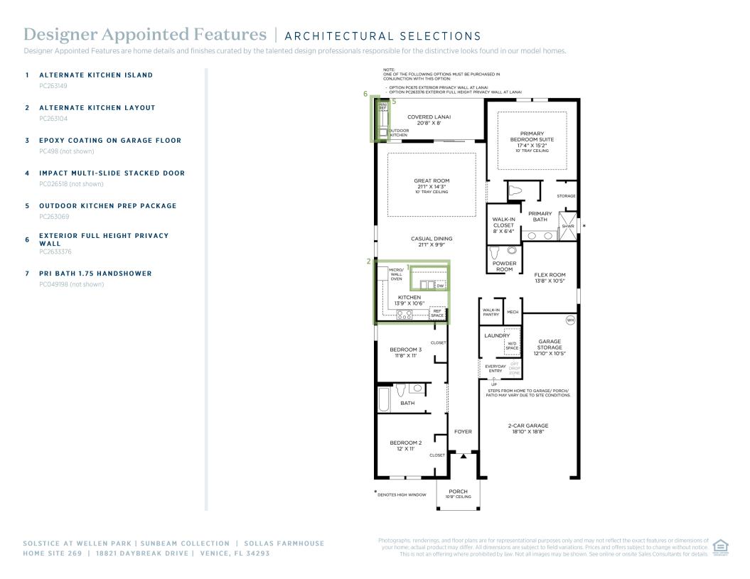 The Sollas is an immediate charmer, with its inviting foyer hallway and spacious great room with large lanai. Overlooking a bright casual dining area is the well-appointed kitchen with a large center island with breakfast bar, ample counter and cabinet space, and sizable walk-in pantry. The serene primary bedroom suite is complemented by ample closet space and spa-like primary bath with dual-sink vanity, large luxe shower, and private water closet. Secondary bedrooms feature roomy closets and shared hall bath. Additional highlights include a secluded flex room, convenient powder room, centrally located laundry, and additional storage.