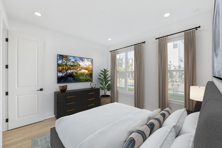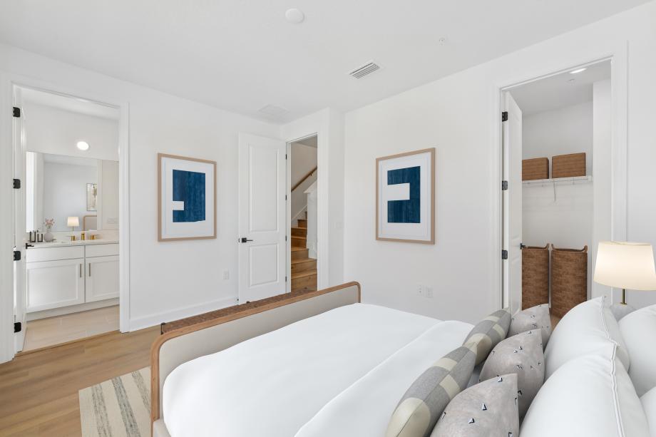 Deluxe townhome style. The Citrine's inviting front stoop and foyer reveal a generous flex room and the welcoming stairs to the main living level, opening onto the spacious great room. The well-designed kitchen overlooks a bright casual dining area, and is enhanced by a large center island with breakfast bar, plenty of counter and cabinet space, and sizable pantry. The graceful primary bedroom suite is highlighted by an ample walk-in closet and spa-like primary bath with large luxe shower. Secondary bedrooms feature roomy closets and shared hall bath. Additional highlights include a convenient powder room on the main living level, centrally located laundry on the bedroom level, and additional storage throughout.