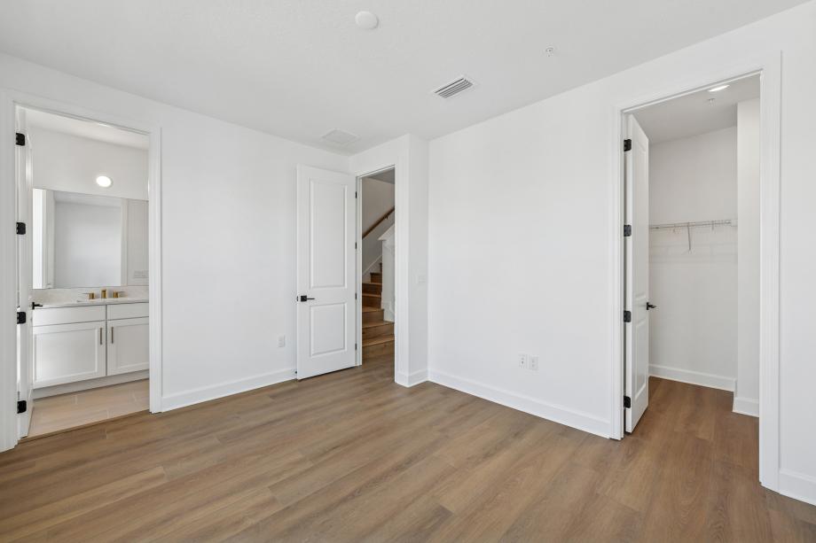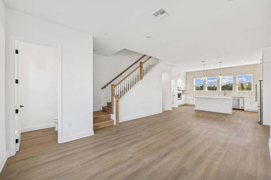 Deluxe townhome style. The Citrine's inviting front stoop and foyer reveal a generous flex room and the welcoming stairs to the main living level, opening onto the spacious great room. The well-designed kitchen overlooks a bright casual dining area, and is enhanced by a large center island with breakfast bar, plenty of counter and cabinet space, and sizable pantry. The graceful primary bedroom suite is highlighted by an ample walk-in closet and spa-like primary bath with large luxe shower. Secondary bedrooms feature roomy closets and shared hall bath. Additional highlights include a convenient powder room on the main living level, centrally located laundry on the bedroom level, and additional storage throughout.