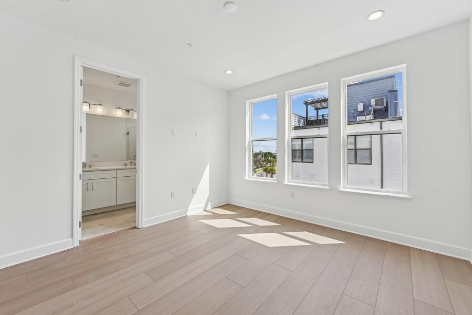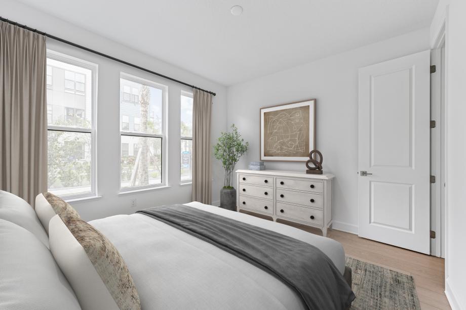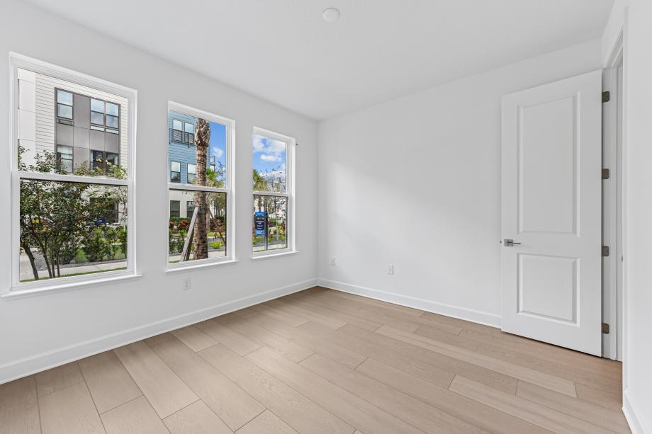Deluxe townhome style. The Citrine's inviting front stoop and foyer reveal a generous flex room and the welcoming stairs to the main living level, opening onto the spacious great room. The well-designed kitchen overlooks a bright casual dining area, and is enhanced by a large center island with breakfast bar, plenty of counter and cabinet space, and sizable pantry. The graceful primary bedroom suite is highlighted by an ample walk-in closet and spa-like primary bath with large luxe shower. Secondary bedrooms feature roomy closets and shared hall bath. Additional highlights include a convenient powder room on the main living level, centrally located laundry on the bedroom level, and additional storage throughout.