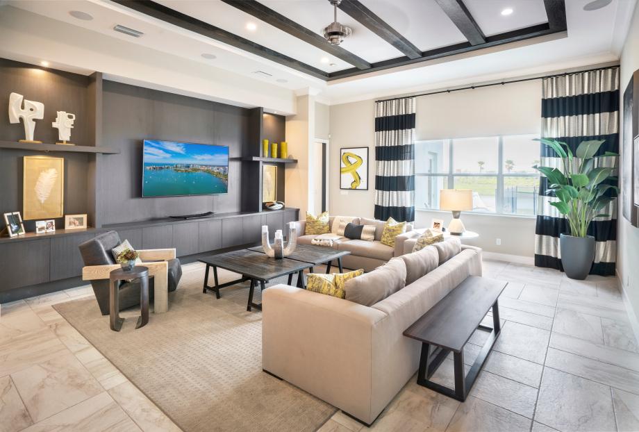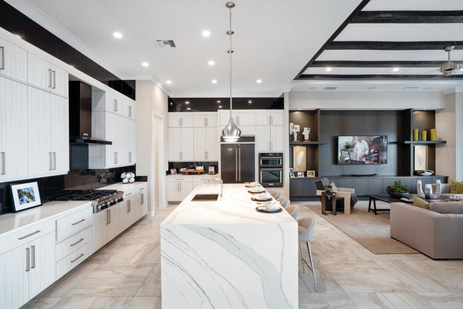 Our fully decorated Solana Caribbean model home is now available for sale. A beautiful foyer welcomes you through double doors, offering stunning views of the main living space and pool area. A 90-degree corner sliding door opens to an expansive outdoor living area complete with a spectacular swimming pool and spa, fire pit, fireplace, outdoor kitchen, and breathtaking lake views. Overlooking the great room and adjacent casual dining area, the gourmet kitchen is perfect for entertaining, featuring ample counter space, a sprawling central island, and premium KitchenAid appliances. This expertly designed, professionally furnished model home is truly turnkey and includes an abundance of thoughtfully curated upgrades. Schedule your appointment today to learn more about this exceptional home.