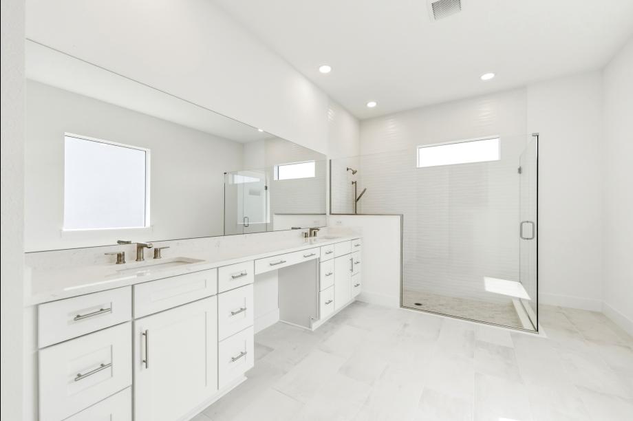 The Bianca Elite features stunning gathering spaces and quiet retreats. A well-appointed multi-gen suite enhances the first floor, offering a private bedroom, full bath, and walk-in closet, along with an attached living area complete with a convenient kitchenette. The primary bedroom is a true retreat offering a classic tray ceiling, a generous walk-in closet, and a relaxing bath featuring a dual-sink vanity, an expansive glass-enclosed shower with a corner seat, a freestanding tub, and a private water closet. The beautiful kitchen is complete with a large center island with breakfast bar, generous counter and cabinet space, and a walk-in pantry. Adjacent, a casual dining room is filled with light from beautiful sliding doors leading to a tranquil covered lanai. Upstairs presents a spacious loft, two secondary bedrooms with large closets, and a full hall bath. Other desirable features include an everyday entry, a first-floor powder room and laundry area, and extra storage throughout.