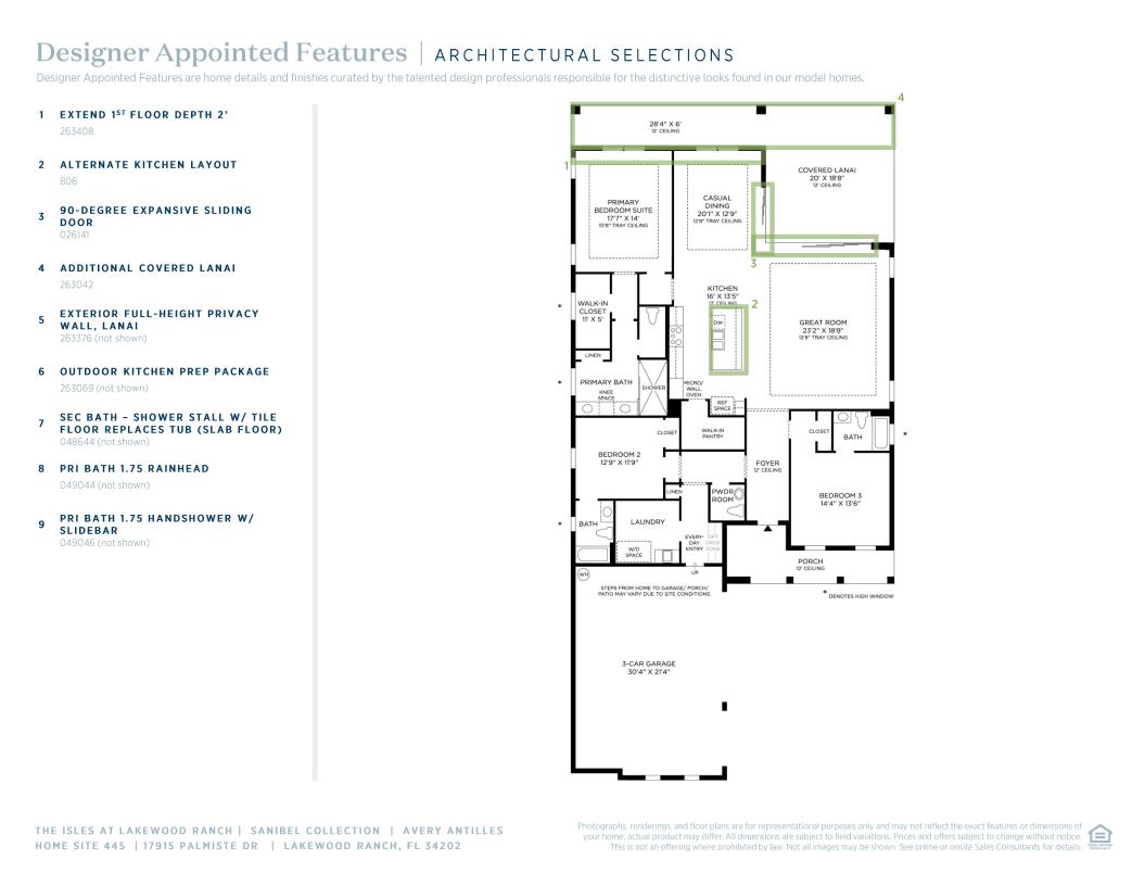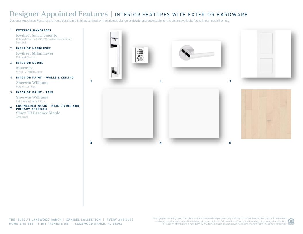 This contemporary home design is available for a quick move-in. The Avery Antilles well-equipped kitchen overlooks the desirable covered lanai, enhanced by a divine center island with breakfast bar and a walk-in pantry. The great room is the perfect setting for relaxation with its 12' ceiling, 10' 90-degree sliders, and ample natural light. The impressive primary bedroom suite features a walk-in closet and a luxurious primary bathroom with a private water closet, expansive shower, dual-sink vanity, and a large linen closet. Roomy secondary bedrooms each have their own large closet and en suite bathroom. The backyard area provides ample space for activities, a pool to be installed, grilling, and vacationing at home. Schedule an appointment today to learn more about this stunning home.