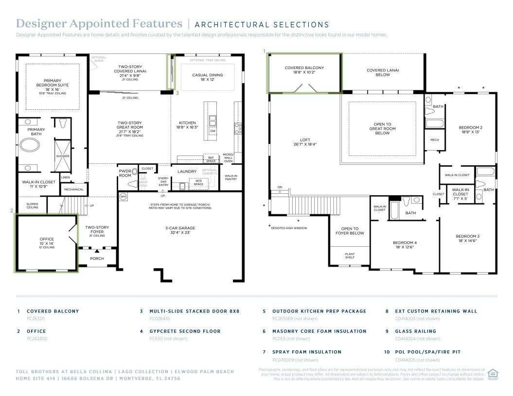 The Elwood exudes elegance with luxury appointments in an alluring open-concept floor plan. The stunning two-story main living area is defined by an elegant foyer that opens onto the great room with a tray ceiling and views of the gorgeous covered lanai. Overlooking a bright casual dining area, the expertly designed kitchen features a large center island with a breakfast bar, plenty of counter and cabinet space, and a sizable walk-in pantry. The marvelous primary bedroom suite is enhanced by a tray ceiling as well as a generous walk-in closet and a stunning primary bath with dual vanities, a large soaking tub, luxe shower, and a private water closet. Secondary bedrooms are secluded on the second floor, offering walk-in closets and private baths, and are central to an expansive loft. A large flex room can be found off the foyer, as the Elwood also features easily accessible laundry, everyday entry, a powder room, and additional storage throughout.