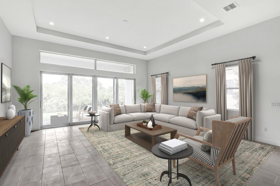 Nestled in the exclusive Watson section of the highly sought-after Tesoro Club, this exceptional 3-bedroom, 2.5-bathroom residence offers the perfect fusion of elegance, comfort, and privacy. Retreat to your expansive primary suite, where tranquil views of the lush backyard create a peaceful escape. The open-concept design is enriched with sophisticated tray ceilings, while the gourmet kitchen dazzles with a 5-burner gas range, stainless steel appliances, and sleek quartz countertops—a chef’s dream come true. Porcelain flooring flows gracefully through the main living areas and primary bedroom, adding a modern touch of refinement. Natural light pours in through impact-rated windows and doors, creating a bright, airy atmosphere. Step outside to your spacious backyard, an inviting haven for outdoor living and entertaining. For added convenience and lifestyle, this home includes an 8' garage extension—the ideal space for embracing the country club lifestyle and housing your golf cart. Don’t miss your chance to own this extraordinary home in the prestigious Tesoro Club. Luxury, style, and serenity await you.
