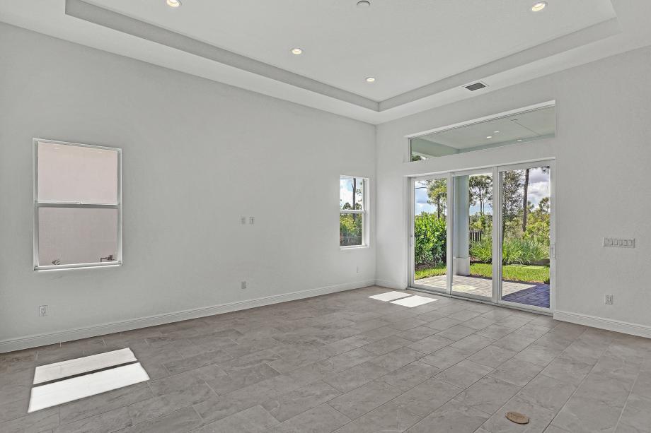 The Ketty home design features a modern, open floor plan and elegant details. An inviting foyer leads into the spacious great room with sliding glass doors leading to a covered lanai, facilitating seamless indoor/outdoor living. Adjacent to a bright, casual dining area, the exquisite kitchen is equipped with a spacious center island and a walk-in pantry. A lavish primary bedroom is enhanced by a tray ceiling, dual walk-in closets, and a serene bathroom with dual sinks, a luxe shower, a relaxing soaking tub, and a private water closet. Two secondary bedrooms with ample closets share a full hall bath with a dual-sink vanity, while another offers a private bath. Other desirable features include an everyday entry, a versatile office/study room, centrally located laundry, and plenty of storage.