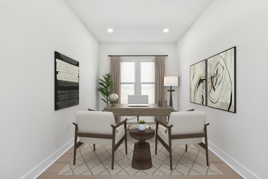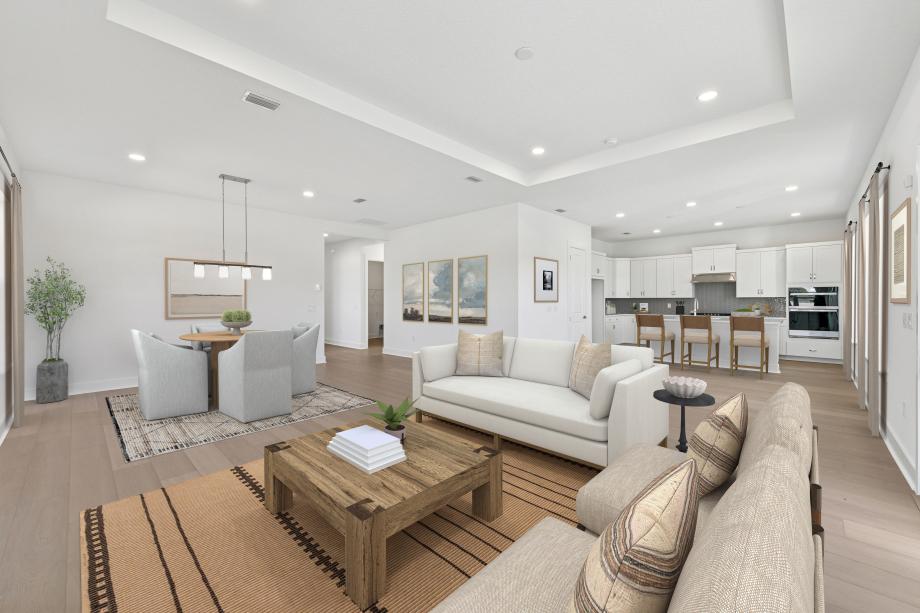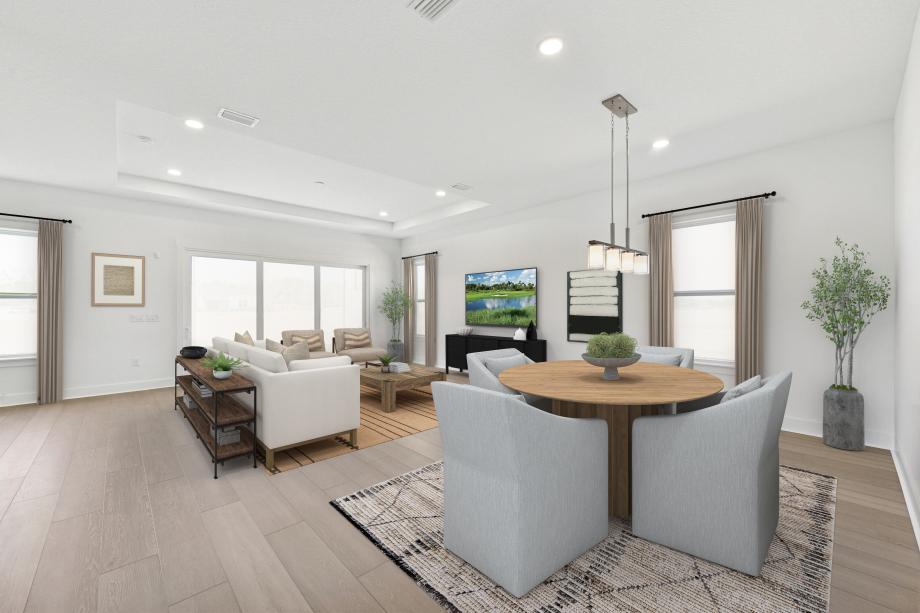 The Pompano blends luxury and charm with an alluring collection of living spaces perfect for relaxing. An extended foyer flows past a bright flex room revealing the spacious great room and a casual dining area, with views of the lovely rear covered lanai. Adjacent, the kitchen is expertly crafted, offering a large center island with breakfast bar, wraparound counter and cabinet space, and a roomy pantry. Defining the beautiful primary bedroom suite is a sizable walk-in closet and a deluxe primary bath with dual-sink vanity, a large luxe shower, and a private water closet. Secondary bedrooms can be found off the foyer, featuring large closets and a shared hall bath with dual-sink vanity. Additionally offered in the Pompano is easily accessible laundry and ample additional storage.