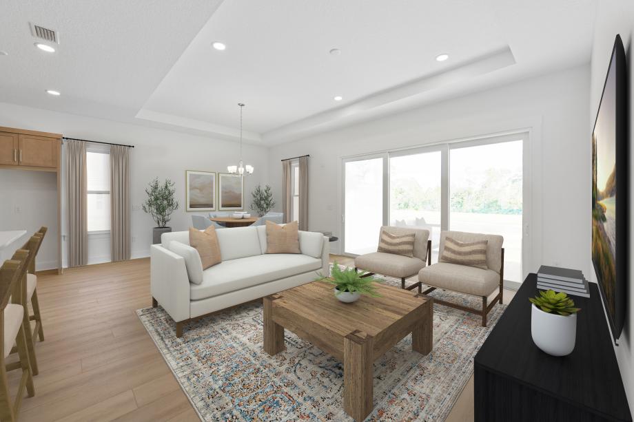 Experience refined single-level living with the lovely Oceana. A welcoming foyer hallway leads to a casual dining area and a spacious great room with access to the beautiful covered lanai. The well-appointed kitchen is enhanced by a large center island with breakfast bar, wraparound counter and cabinet space, and an ample pantry. Highlighting the impressive primary bedroom suite is a generous walk-in closet and a stunning primary bath with a dual-sink vanity, a luxe shower, and a private water closet. Secondary bedrooms feature sizable closets and a shared hall bath with a dual-sink vanity. Additional highlights include a roomy flex room off the foyer, easily accessible laundry, and ample additional storage.
