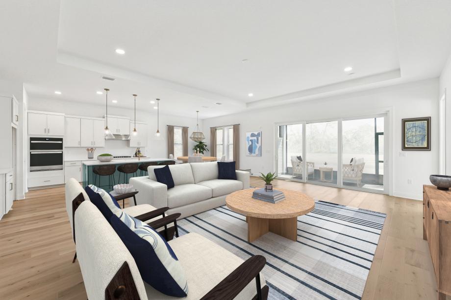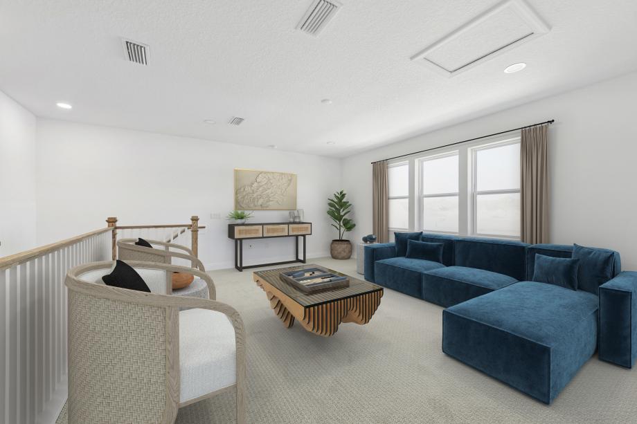 The Barnwell Elite immediately impresses with a charming foyer revealing a stunning great room with a tray ceiling and a spacious covered lanai beyond. Perfect for entertaining, the well-designed kitchen features a sizable center island with breakfast bar, plenty of counter and cabinet space, and an ample walk-in pantry. The primary bedroom is a true retreat with a sophisticated tray ceiling, a large walk-in closet, and an impressive spa-like primary bath complete with a dual-sink vanity, a soaking tub, a luxe shower, linen storage, and a private water closet. Roomy secondary bedrooms share separate full hall baths. On the second floor, an airy loft provides an excellent space for gathering or relaxing. Additional highlights include a versatile flex space, an everyday entry, centrally located laundry, a second-floor powder room, and extra storage.