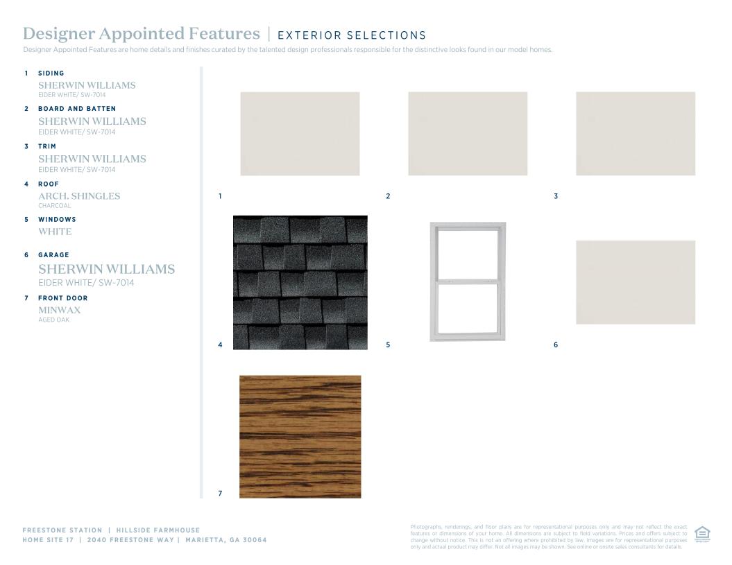 Stylish contemporary living. The Hillside's inviting covered porch and stunning two-story foyer open onto a bright flex room, spacious great room, and casual dining area with rear yard access. The well-designed gourmet kitchen is complete with a large center island with breakfast bar, plenty of counter and cabinet space, and huge walk-in pantry. The serene primary bedroom suite is enhanced by a lovely tray ceiling, gigantic walk-in closet, and deluxe primary bath with dual-sink vanity, large soaking tub, luxe shower with seat, and private water closet. Central to a generous loft, the sizable secondary bedrooms feature ample closets, one with private bath, two with shared hall bath. Additional highlights include a desirable first floor bedroom suite with closet and shared full hall bath, convenient everyday entry, centrally located laundry, and additional storage.