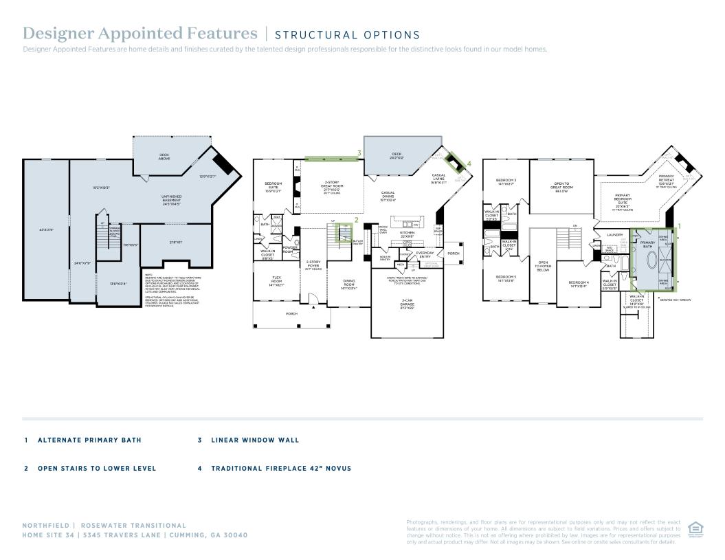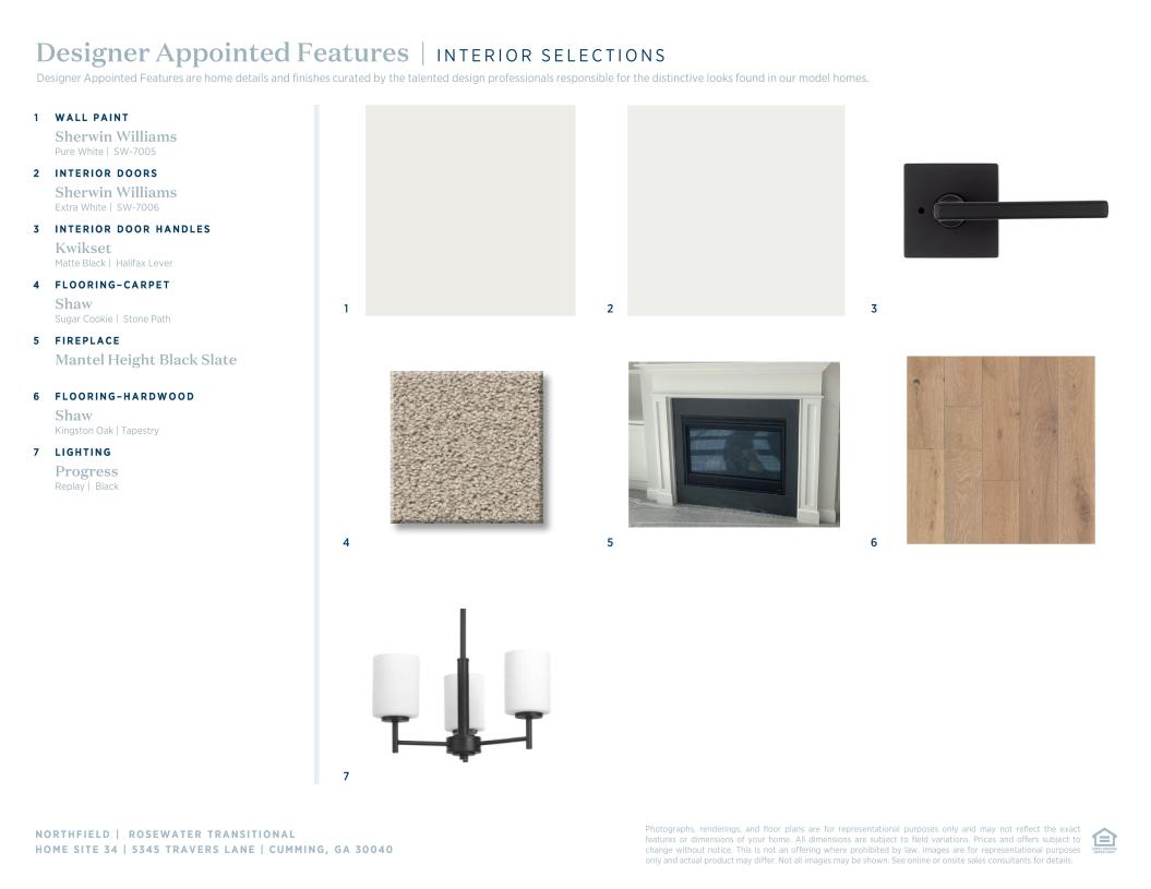 Boasting style and elegance within a modern design, the Rosewater is the epitome of luxury living. A stunning two-story foyer flanked by a formal dining room and flex room welcomes you into the soaring two-story great room, presenting alluring views of the large outdoor patio beyond and a casual living and dining area that is perfect for entertaining. The gourmet kitchen is wonderfully crafted to fit your every need, offering a walk-in pantry, center island with breakfast bar, and a butler pantry connecting to the formal dining room. Upstairs, the breathtaking primary bedroom suite boasts tray ceilings and exquisite features, including a relaxing primary retreat, an oversized walk-in closet, and a spa-like primary bath complete with dual vanities, a large tub, lavish shower with seat, linen storage, and a private water closet. The spacious secondary bedrooms all feature private baths and walk-in closets. A secluded first-floor bedroom suite is perfect for hosting guests or multi-gen living options, complete with a full private bath and large walk-in closet. The Rosewater is also equipped with an expansive front porch, a convenient side porch with everyday entry, and second-floor laundry.